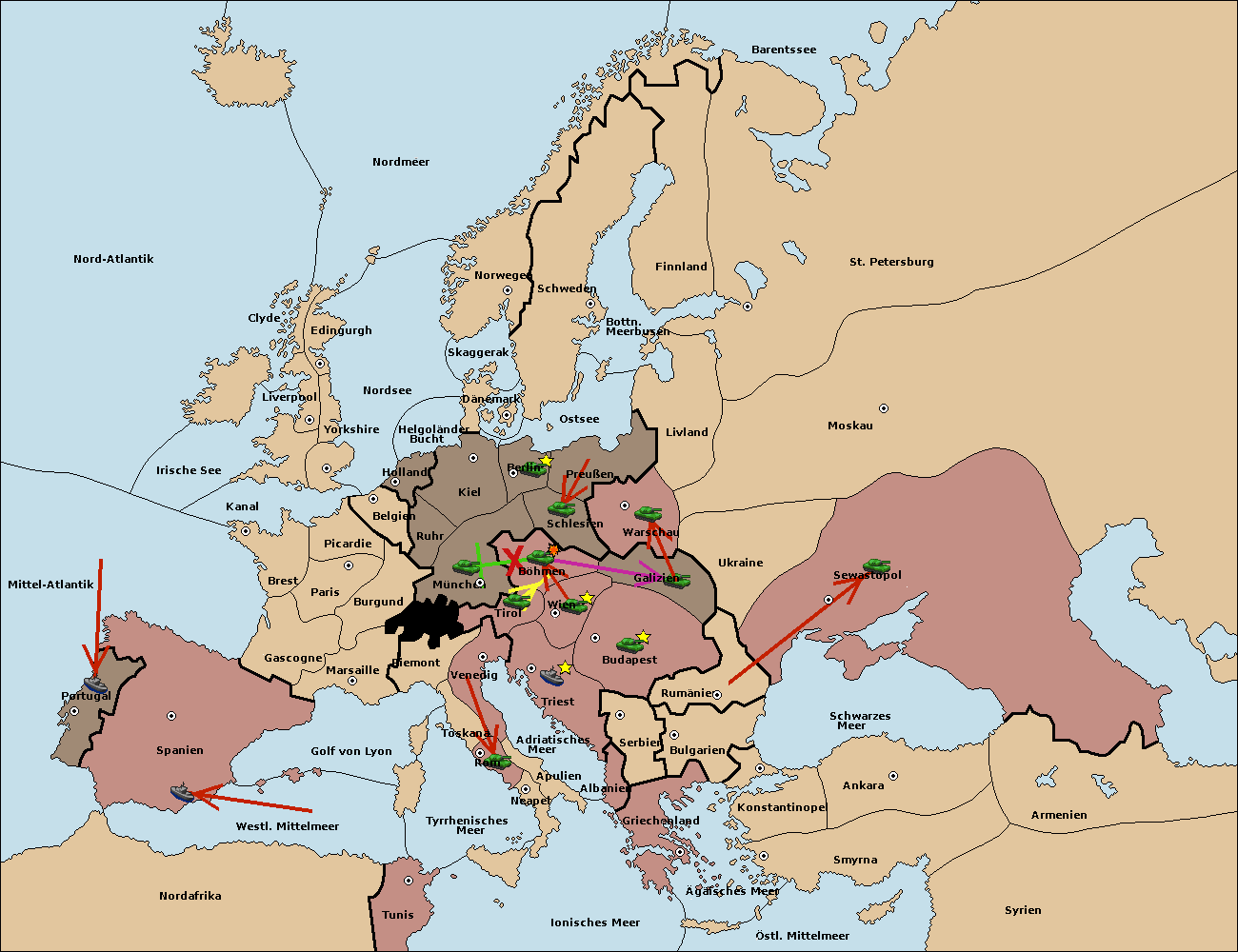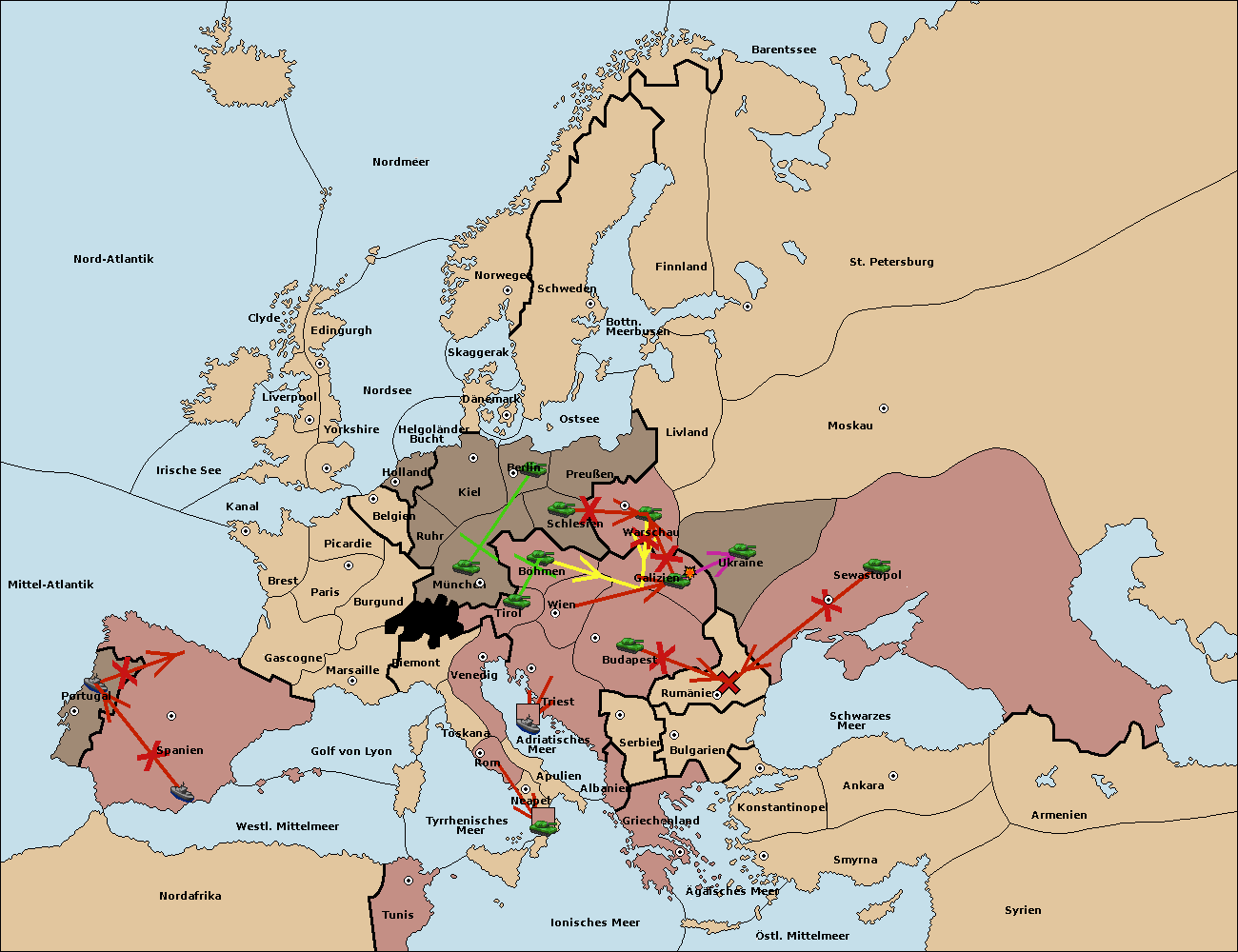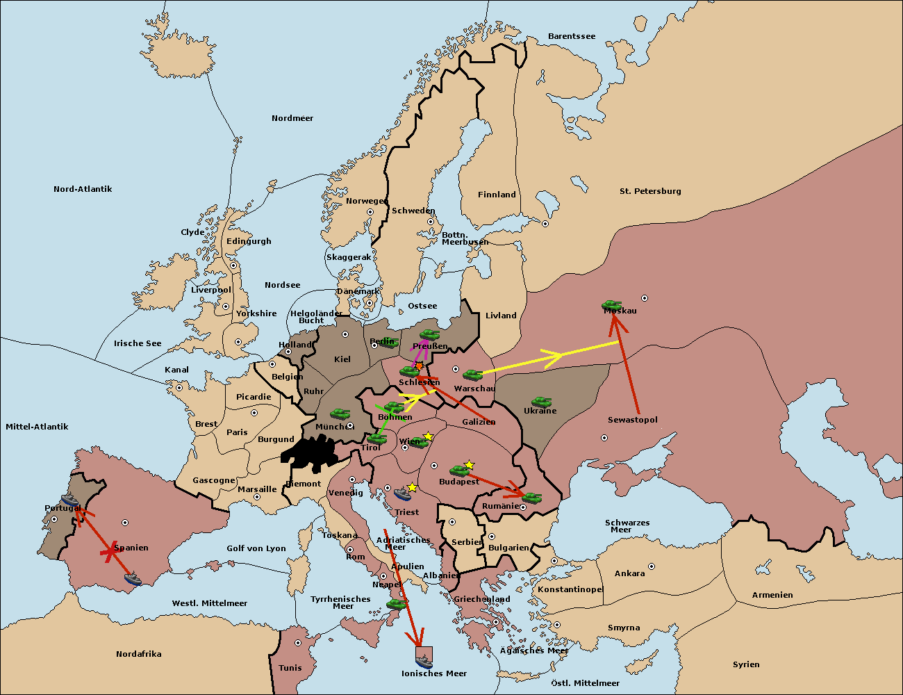 • Die Armee in Warschau support move nach Moskau von Sewastopol.