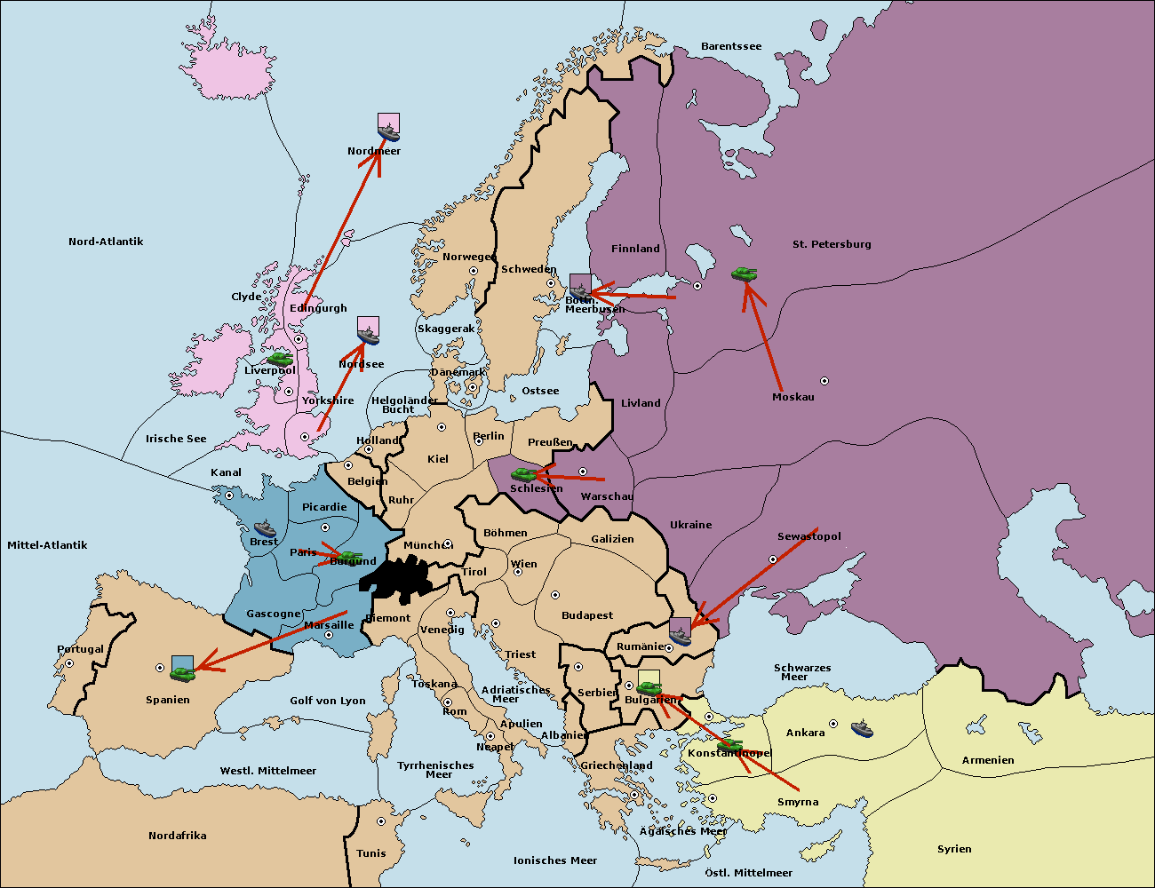 • Die Flotte in St. Petersburg (Nordküste) move nach Barentssee.