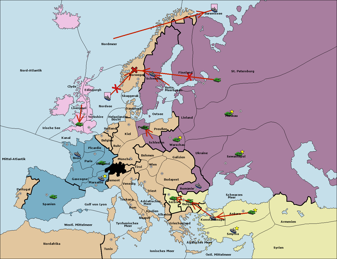 • Die Armee in St. Petersburg move nach Norwegen. (gescheitert)