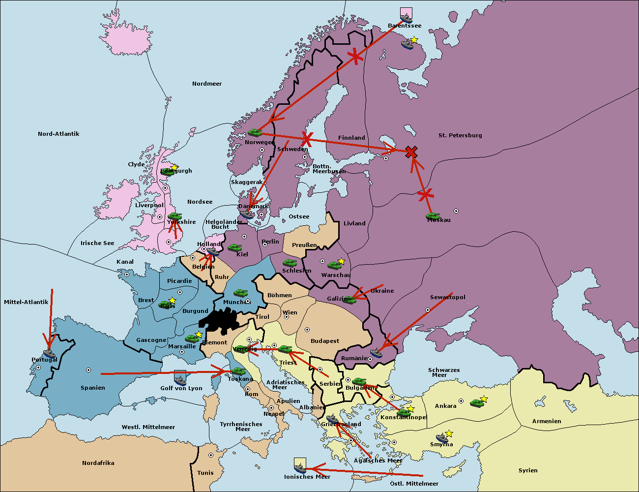 • Die Flotte in St. Petersburg (Nordküste) move nach Norwegen.