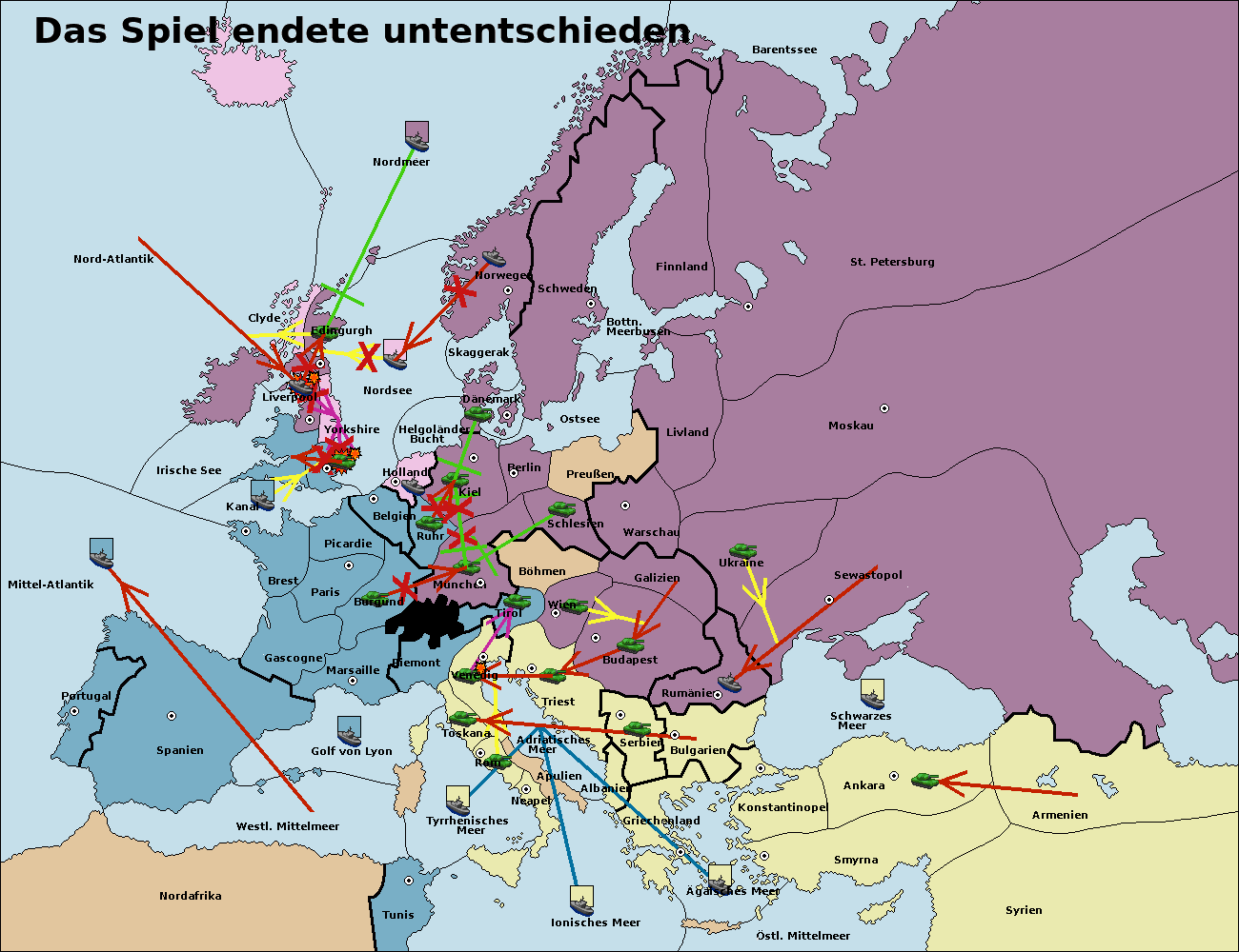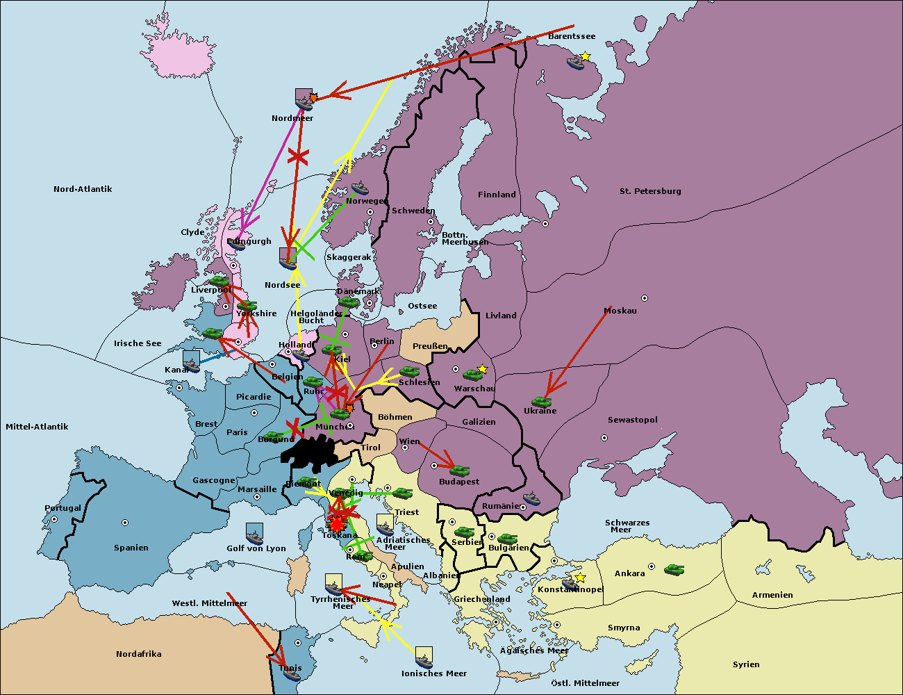• Die Armee in Kiel support hold nach München. (gescheitert)