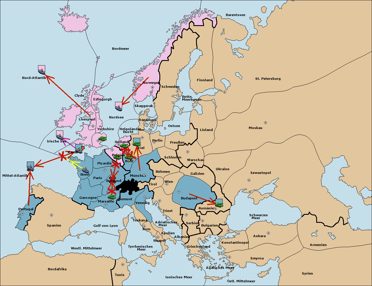 • Die Flotte in Gascogne support move nach Mittel-Atlantik von Brest.