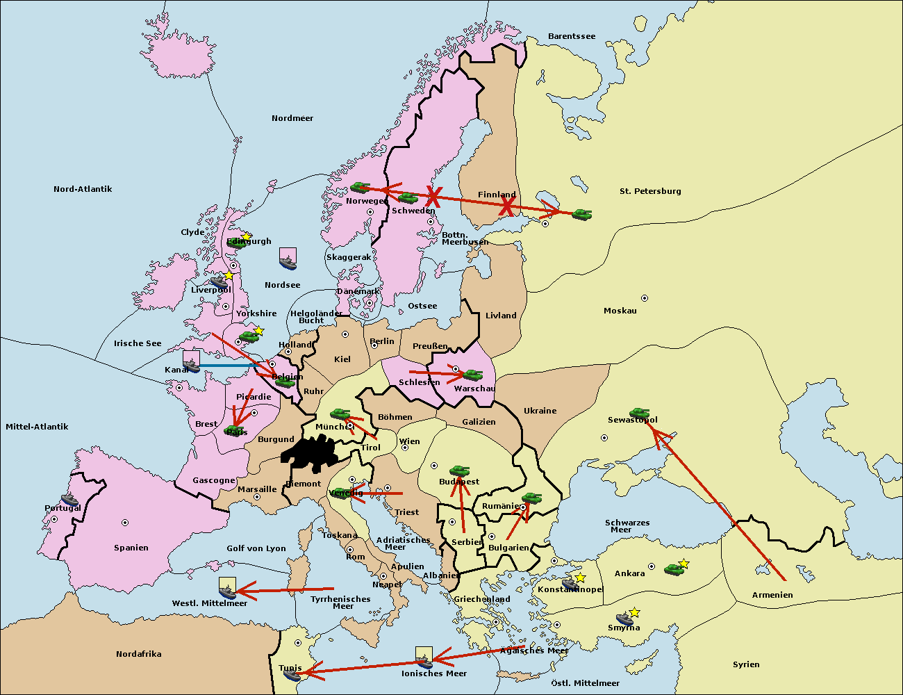 • Die Armee in Norwegen support move nach Finnland von Schweden. (gescheitert)