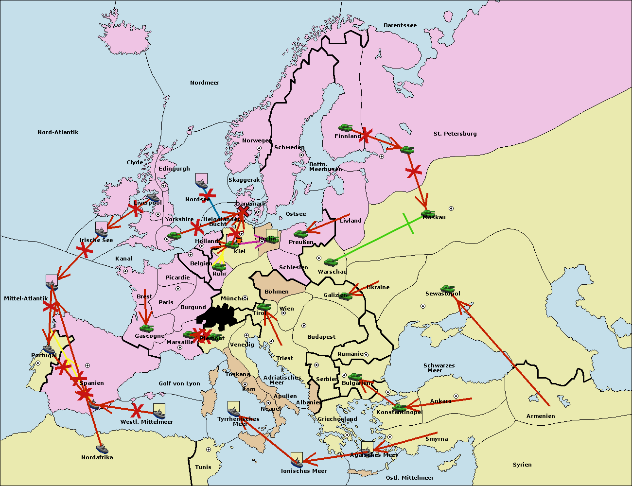 • Die Flotte in Spanien (Südküste) support move nach Marseille von Burgund.