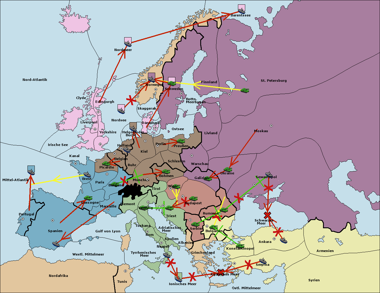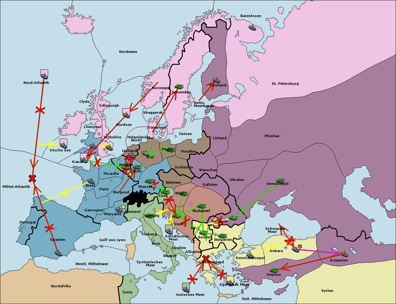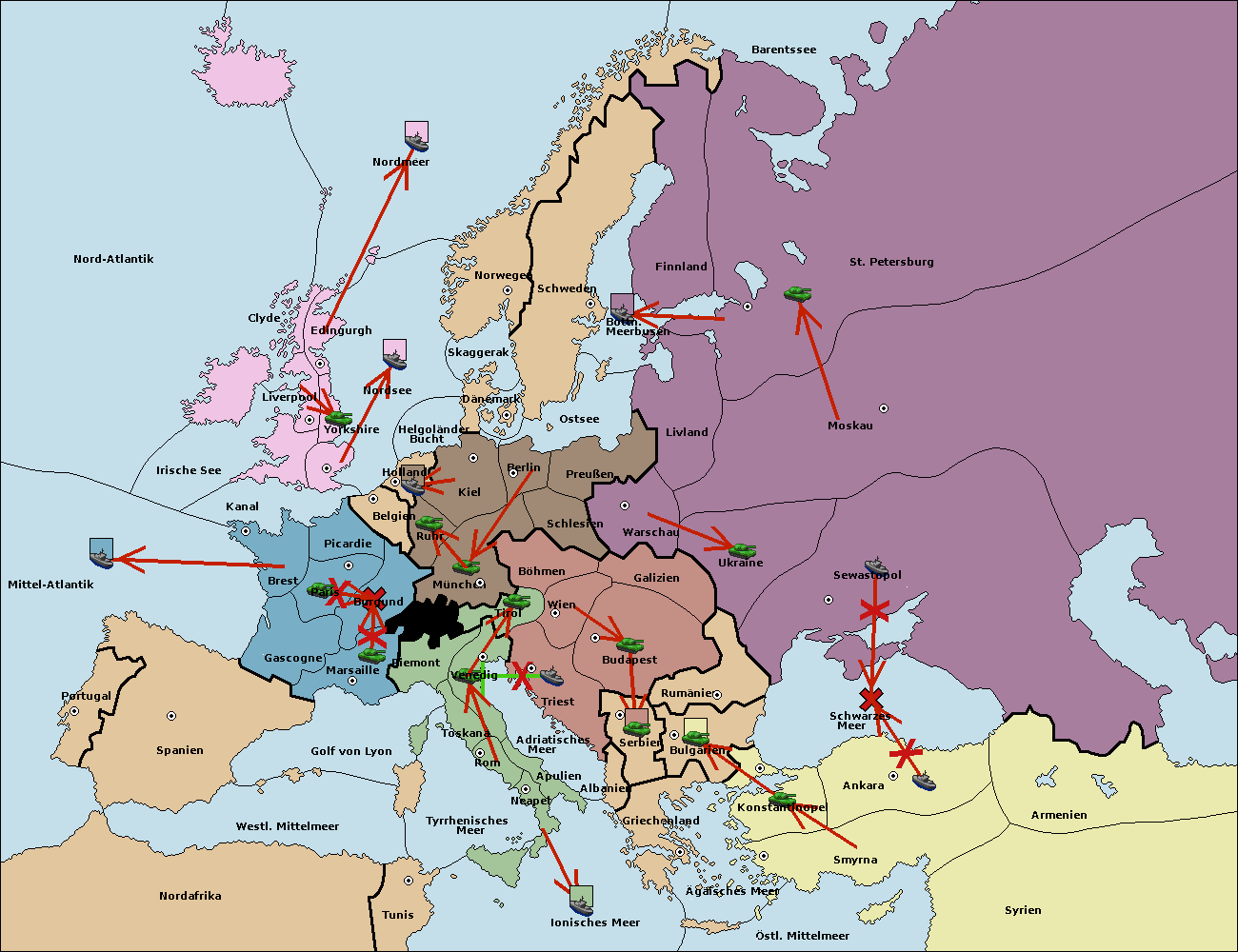 • Die Armee in Konstantinopel support hold nach Bulgarien.