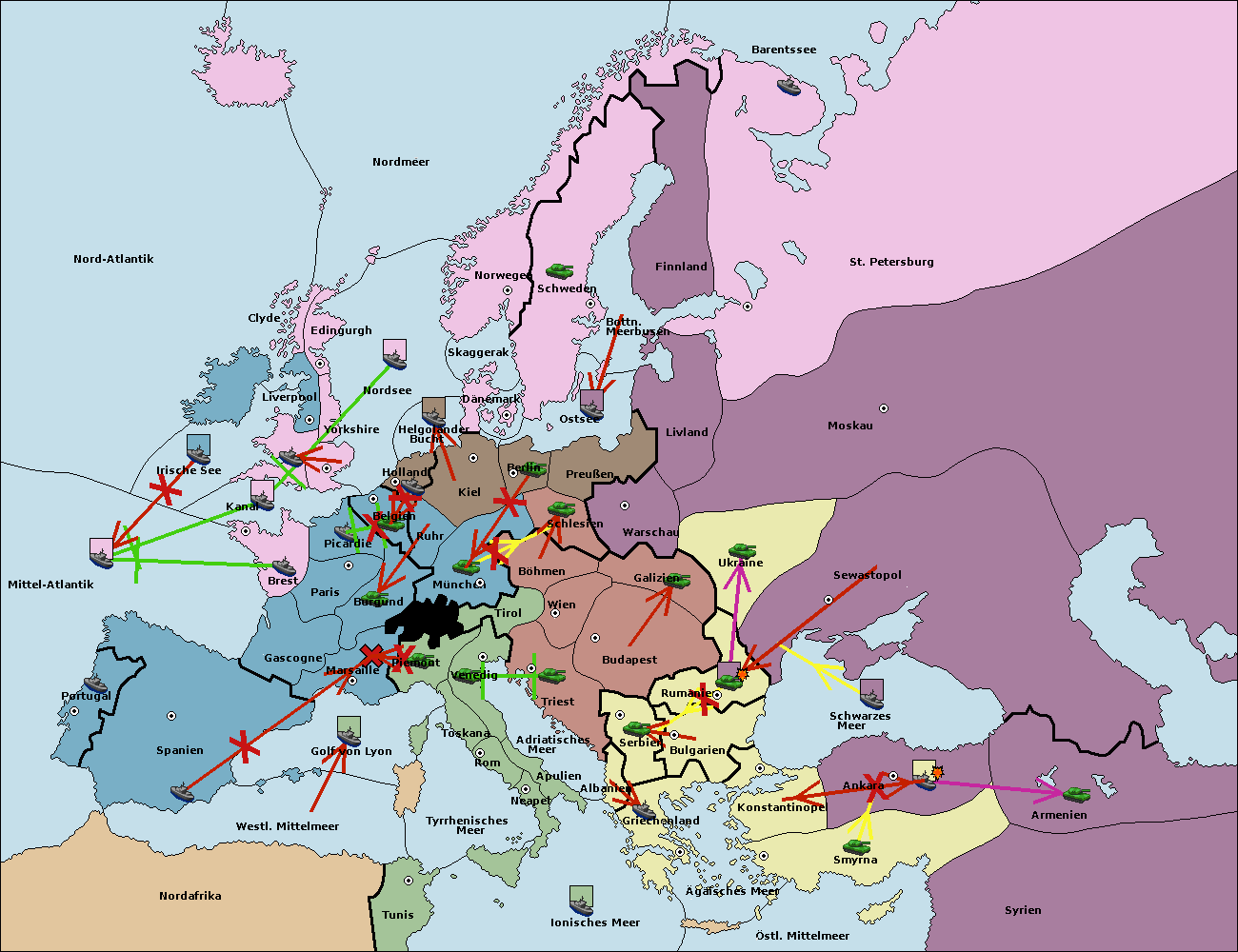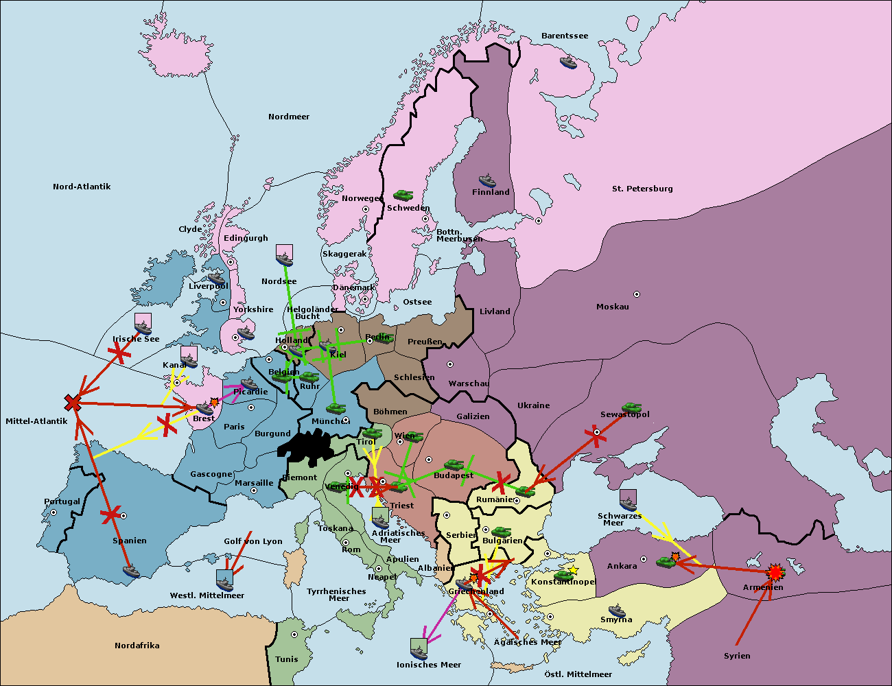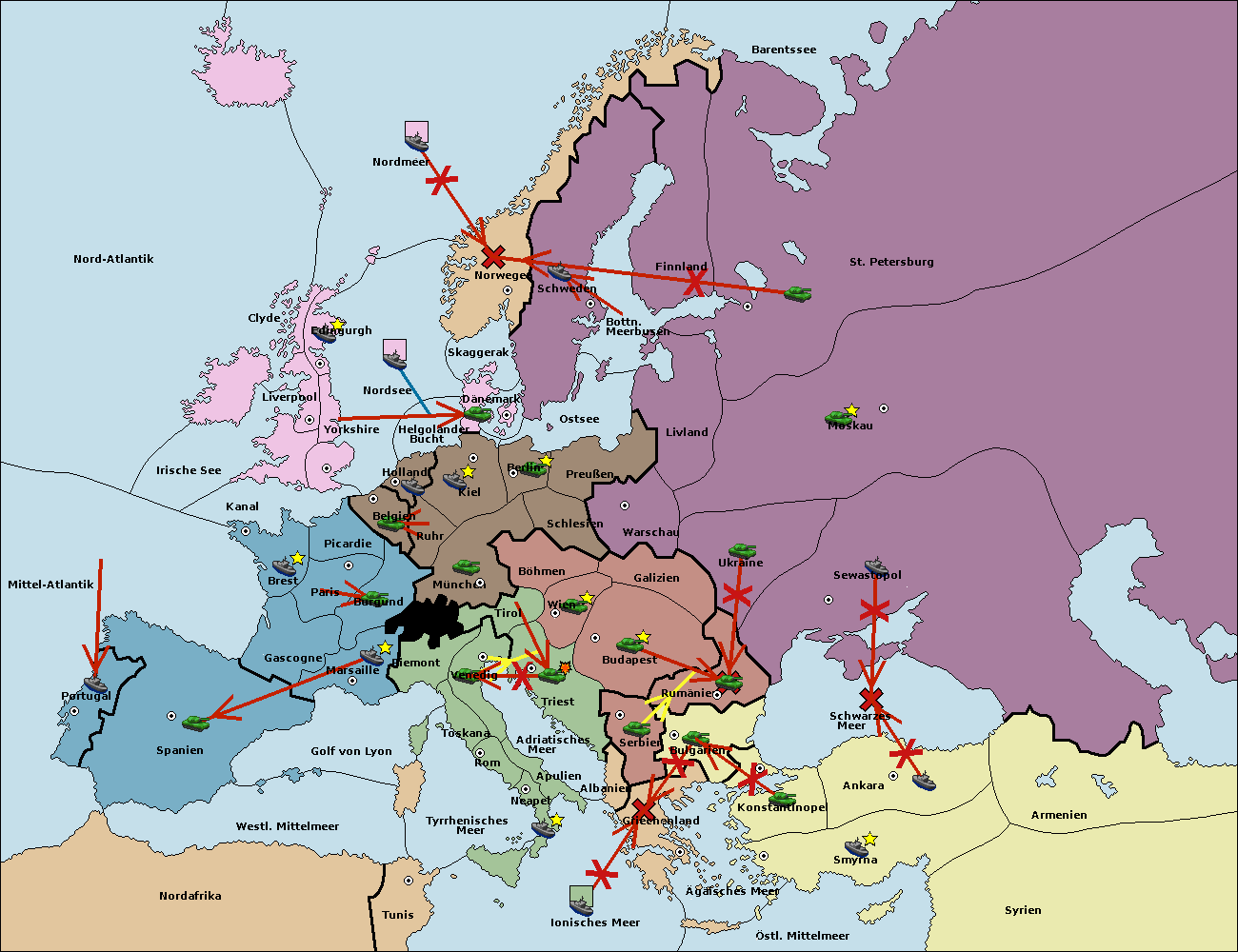 • Die Armee in Konstantinopel support hold nach Bulgarien.