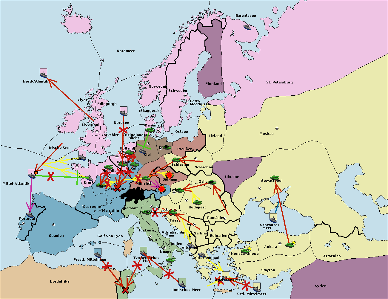 • Die Flotte in Spanien (Südküste) support move nach Mittel-Atlantik von Portugal. (gescheitert)