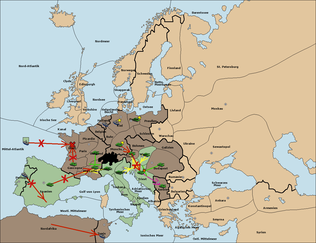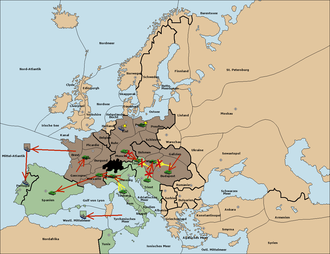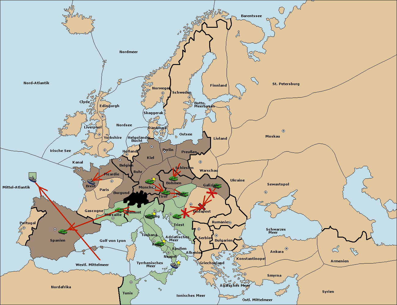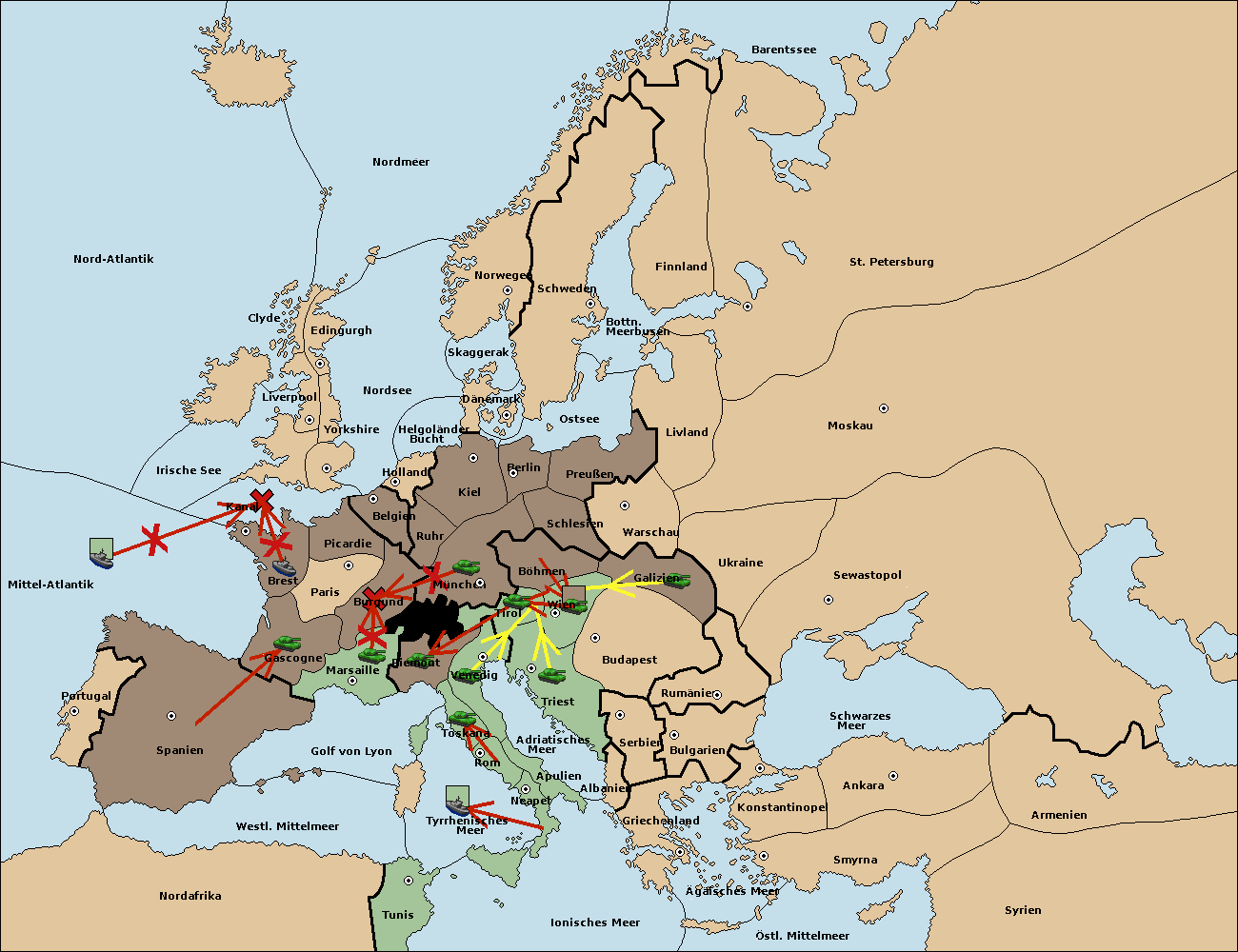 • Die Armee in Triest support move nach Tirol von München. (gescheitert) (verdrängt)