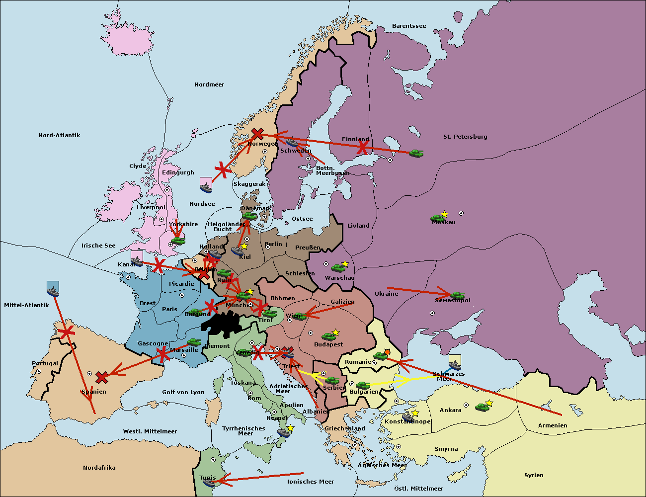 • Die Armee in München support move nach Kiel von Ruhr. (gescheitert)