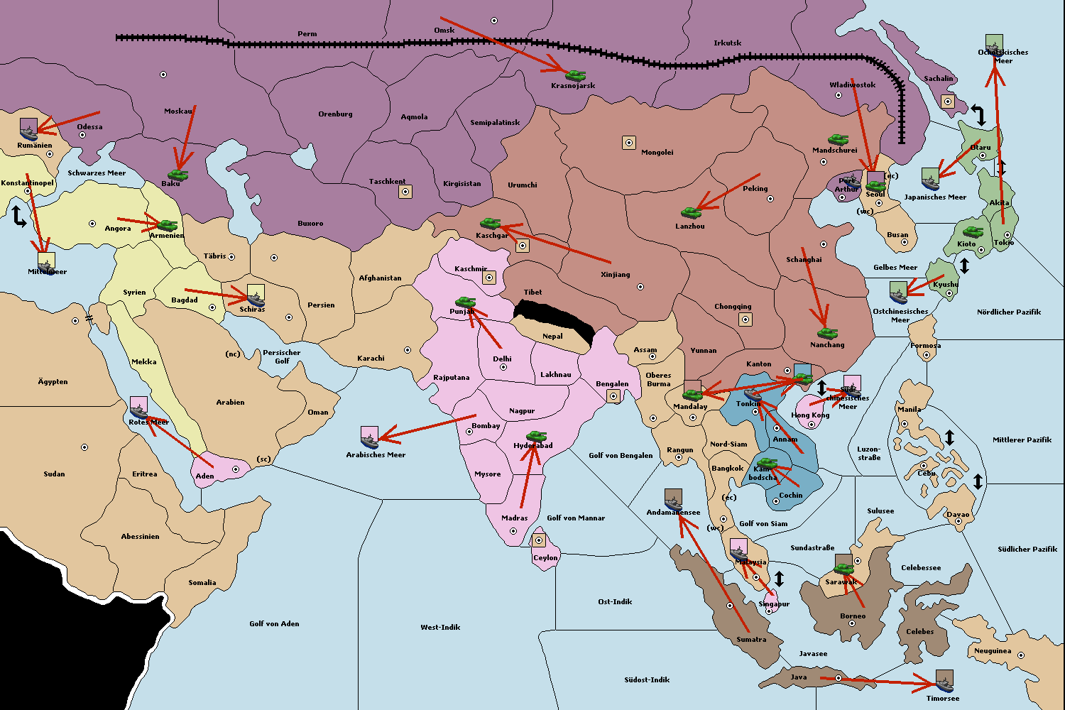 • Die Armee in Mandschurei support move nach Wladiwostok von Irkutsk.