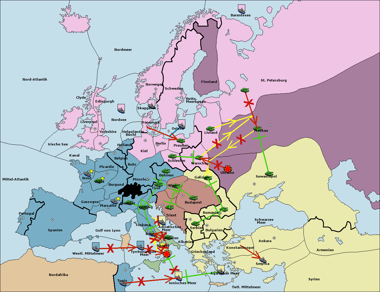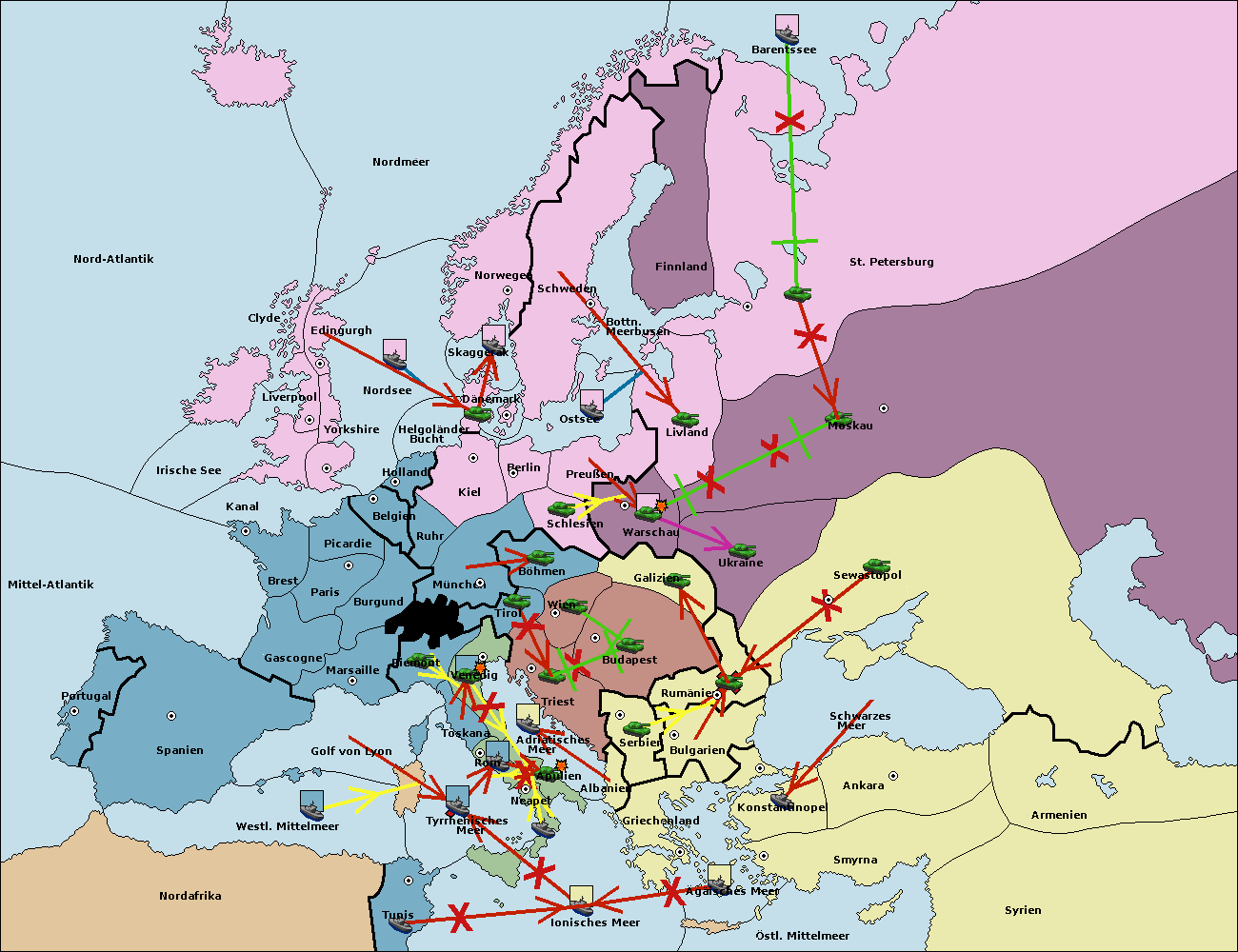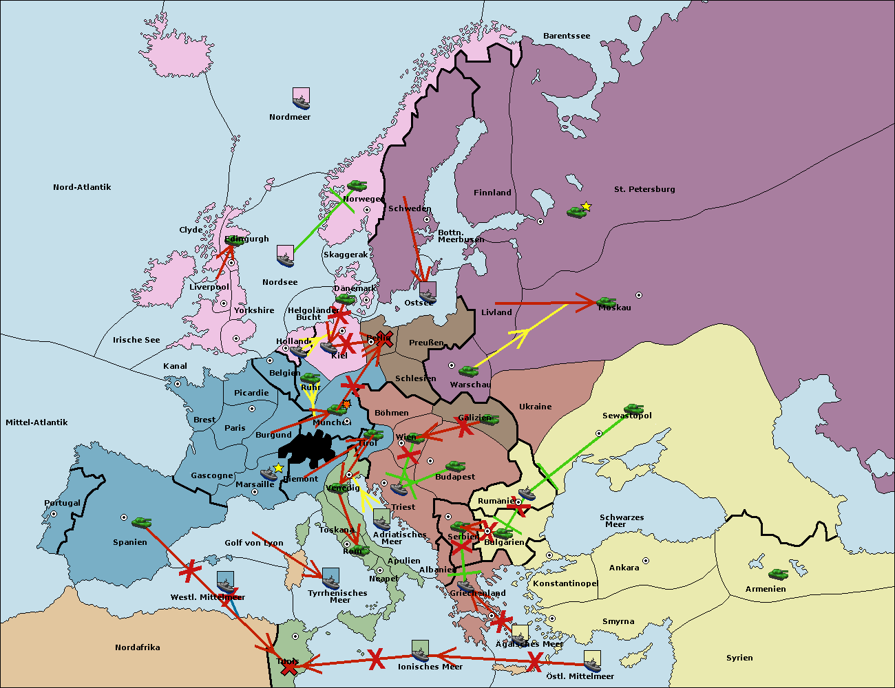 • Die Armee in Warschau support move nach Moskau von St. Petersburg. (gescheitert)