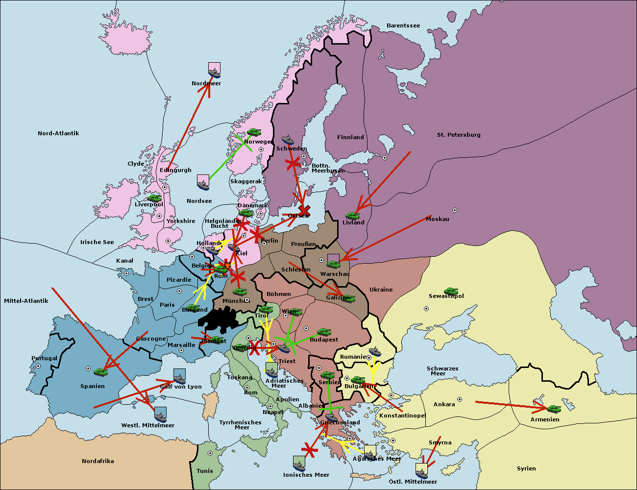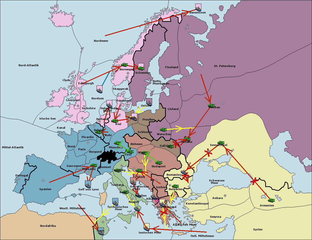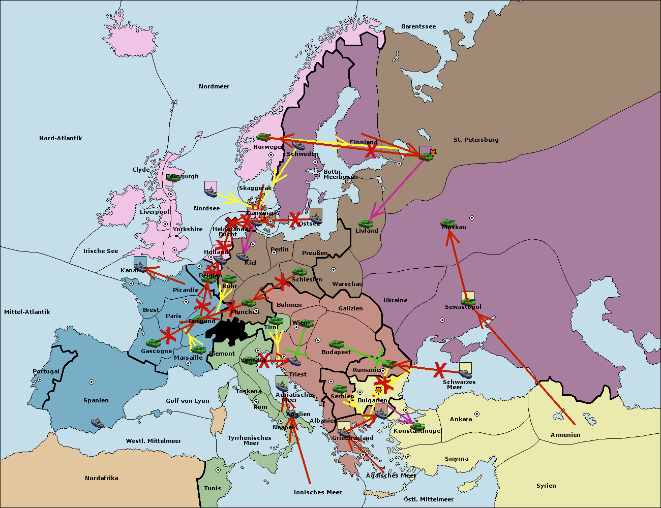 • Die Flotte in Griechenland support hold nach Bulgarien. (gescheitert)