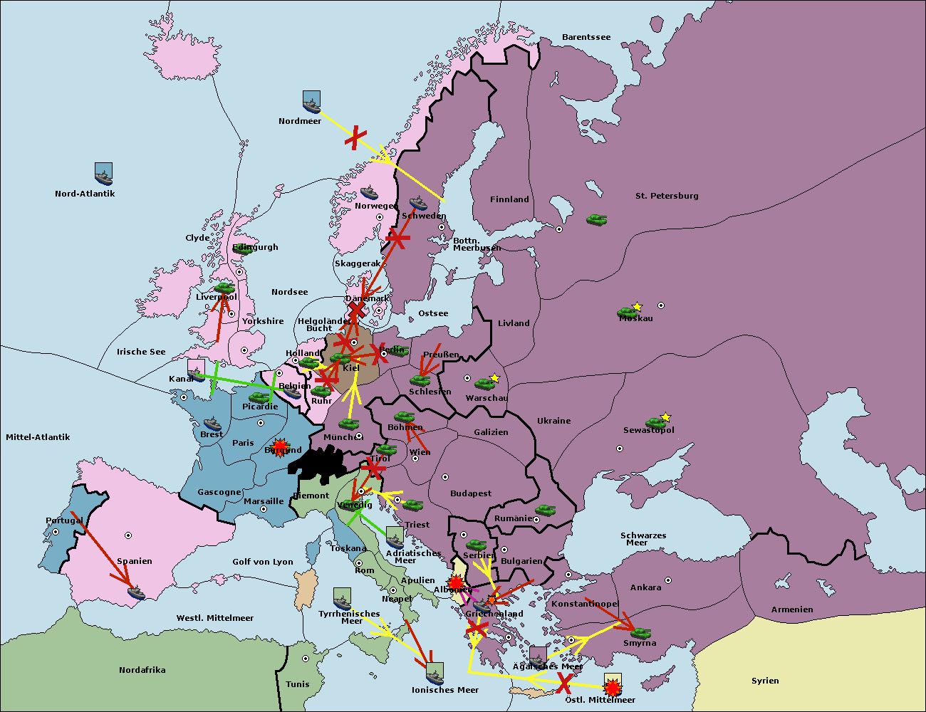 • Die Flotte in Rumänien support hold nach Bulgarien. (gescheitert)