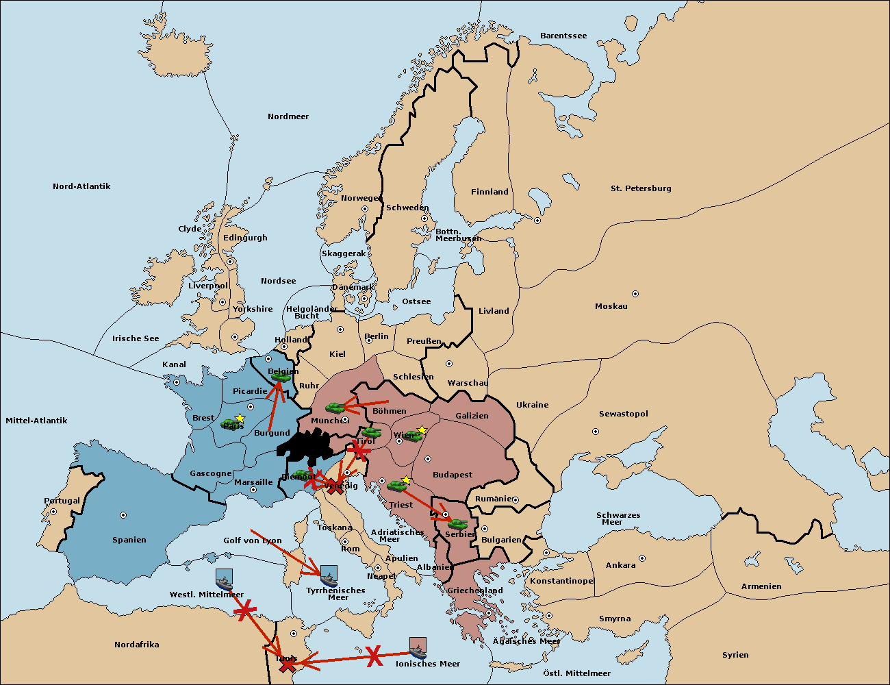 • Die Flotte in Spanien (Südküste) move nach westl. Mittelmeer.