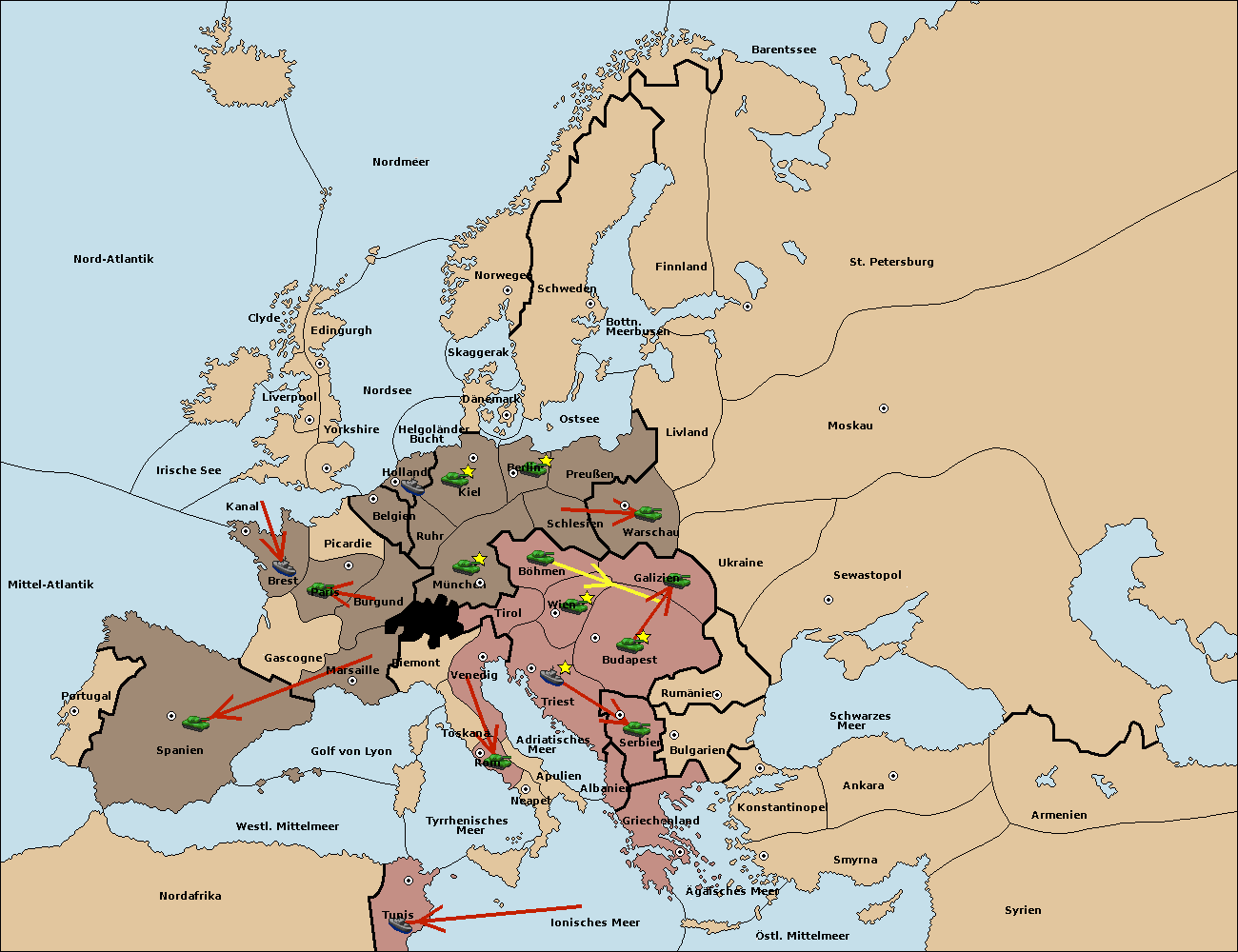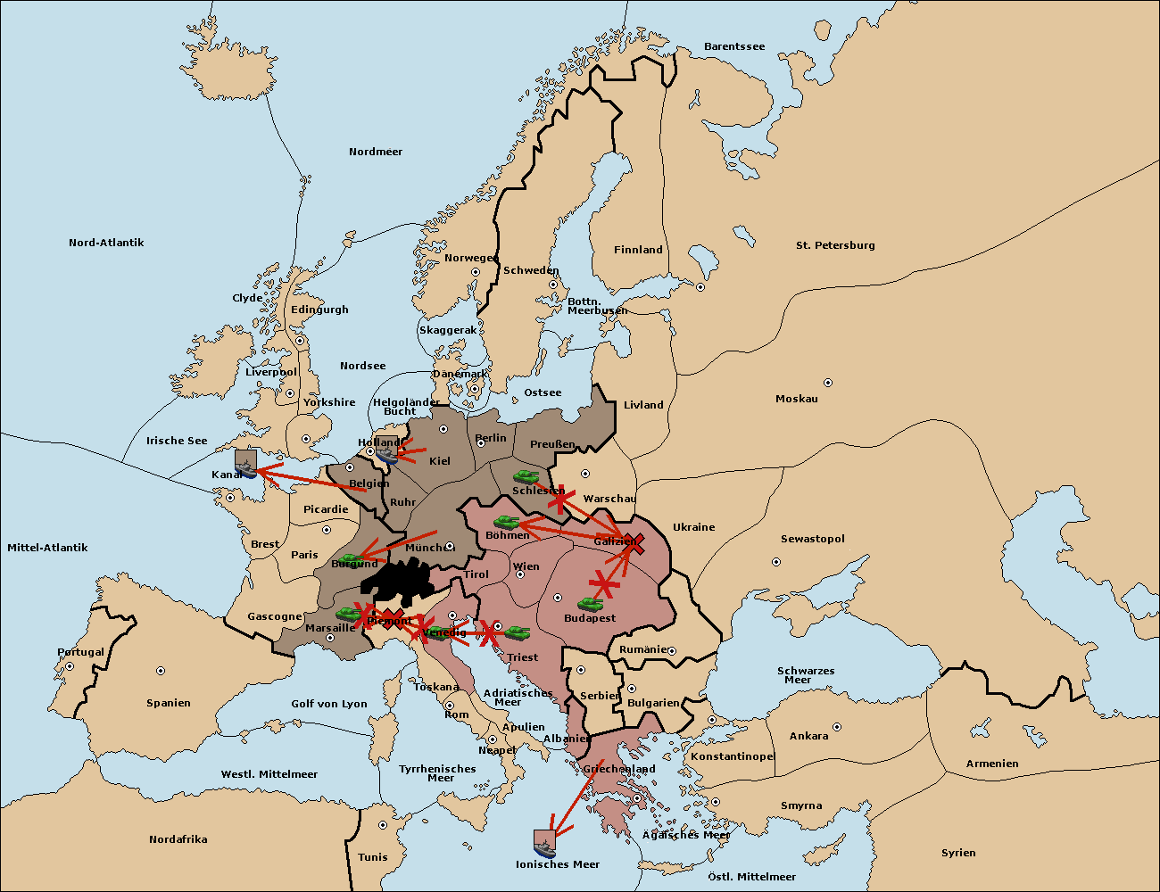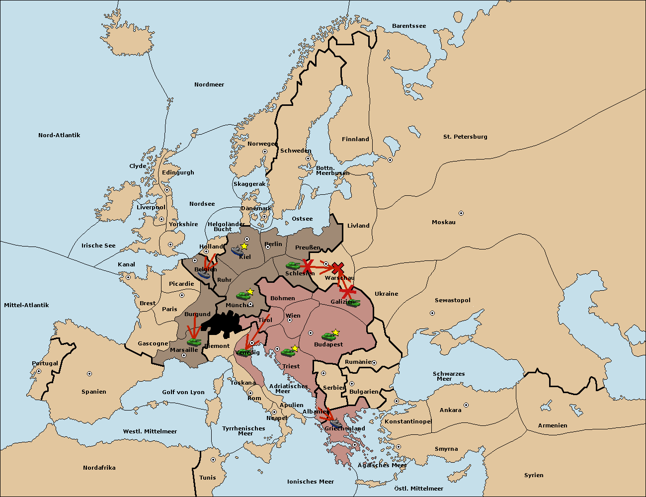 • Die Armee in Wien support move nach Galizien von Budapest.