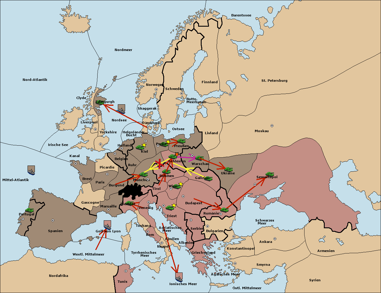 • Die Armee in Warschau support move nach Schlesien von München. (gescheitert)