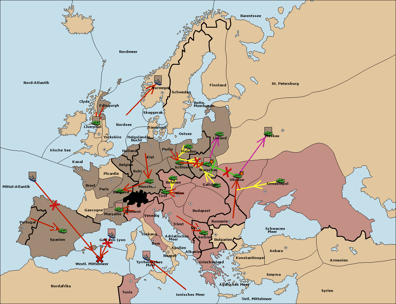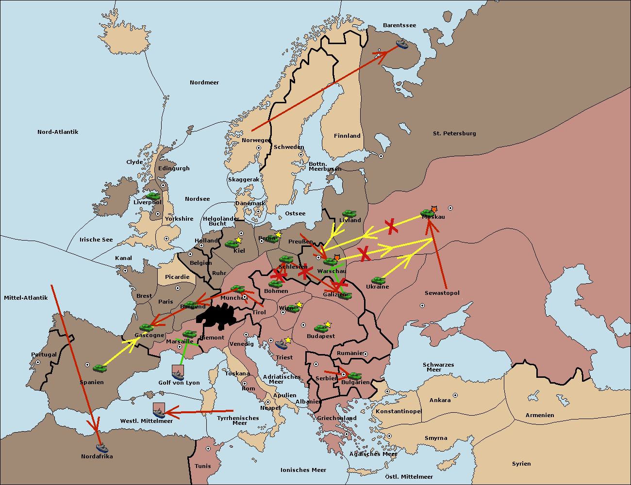 • Die Armee in Warschau support move nach Moskau von Sewastopol. (gescheitert) (verdrängt)