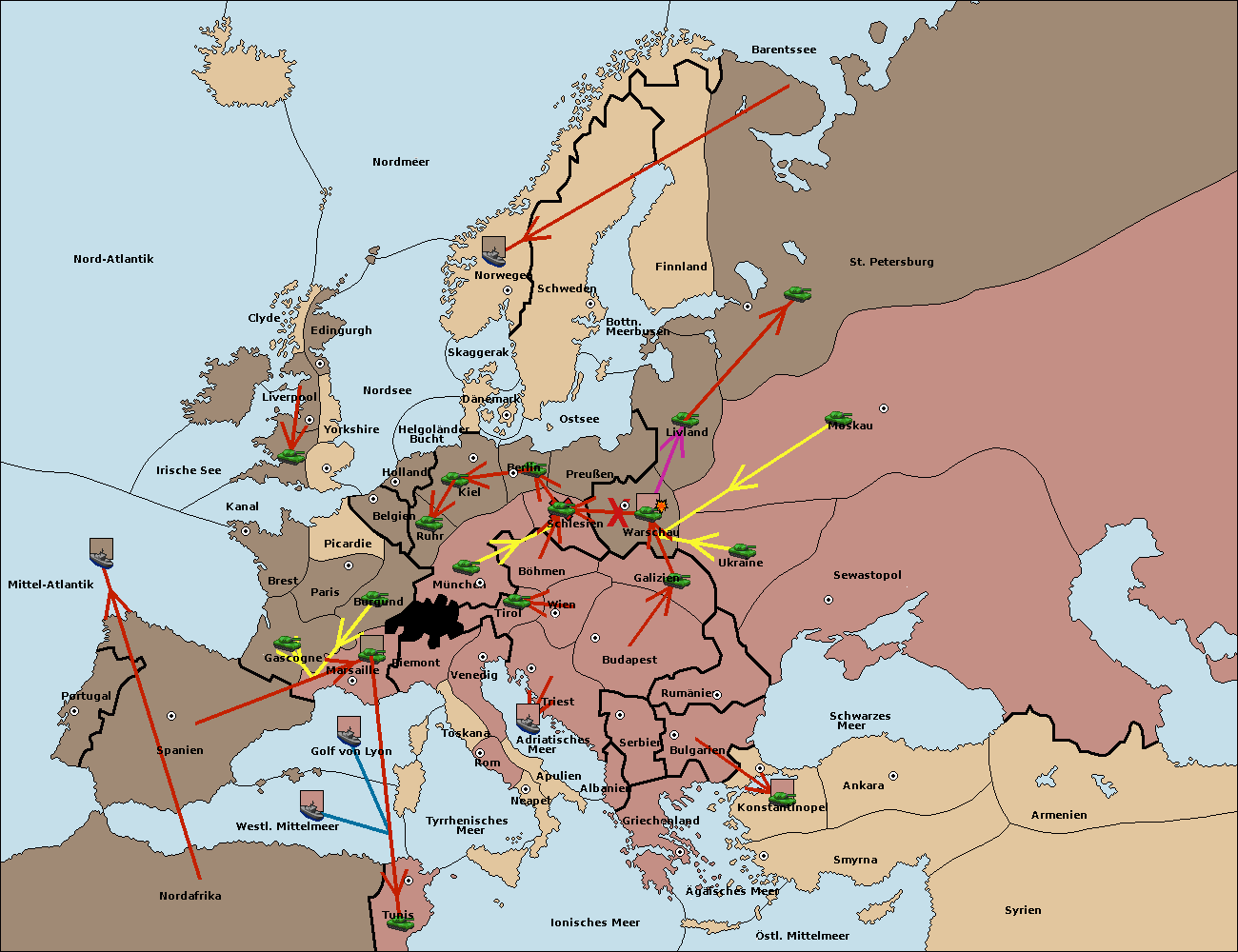 • Die Armee in Warschau wird zerstörtFlotte in Warschau gebaut.