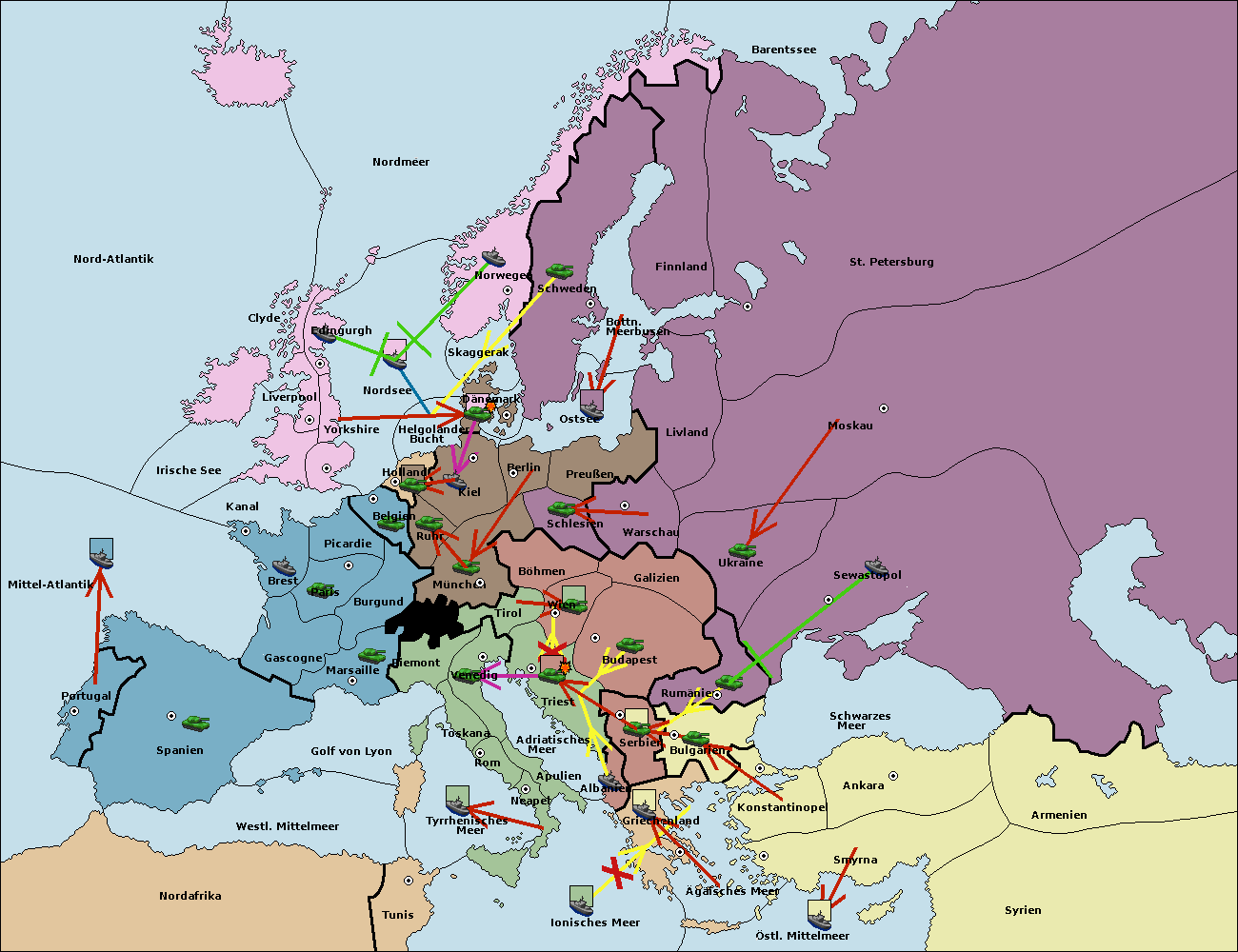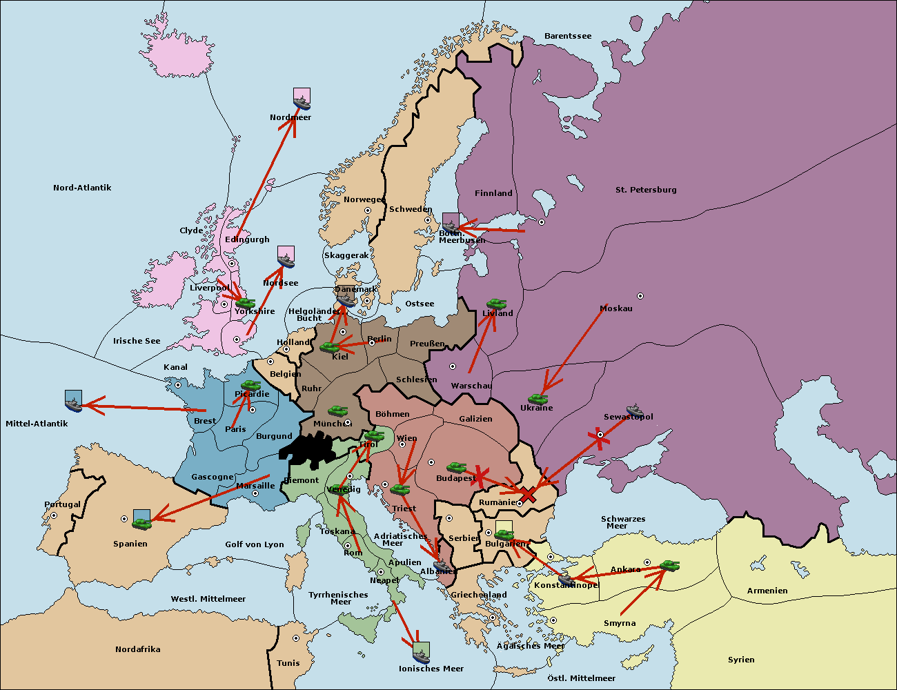 • Die Armee in Budapest support move nach Triest von Serbien.