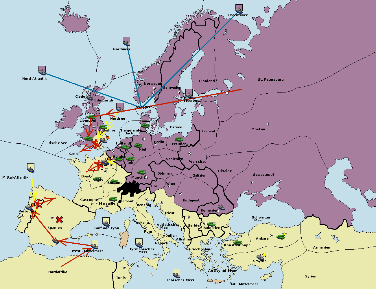 • Die Flotte in Spanien (Südküste) move nach Portugal.