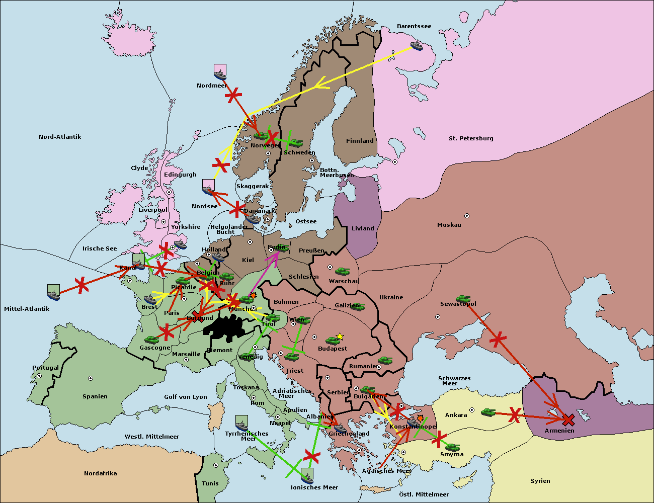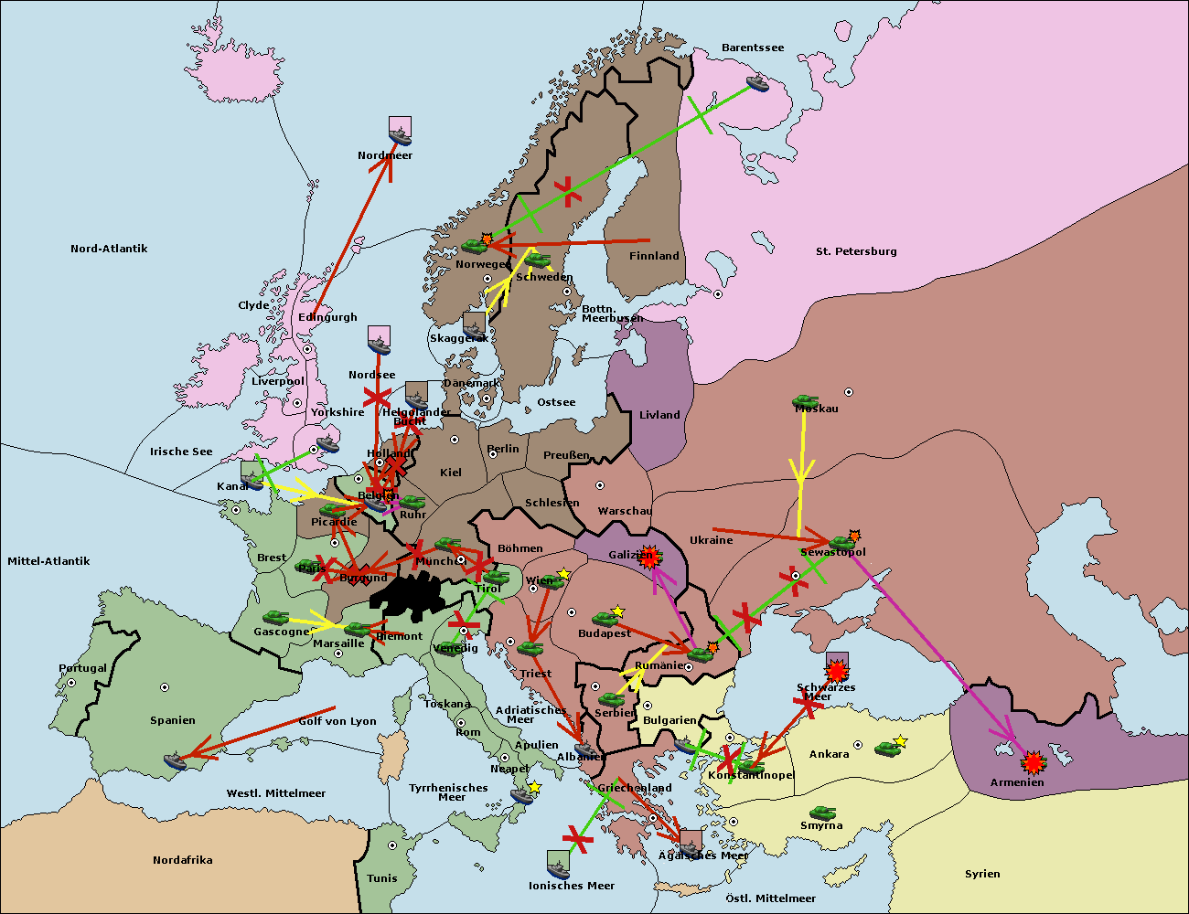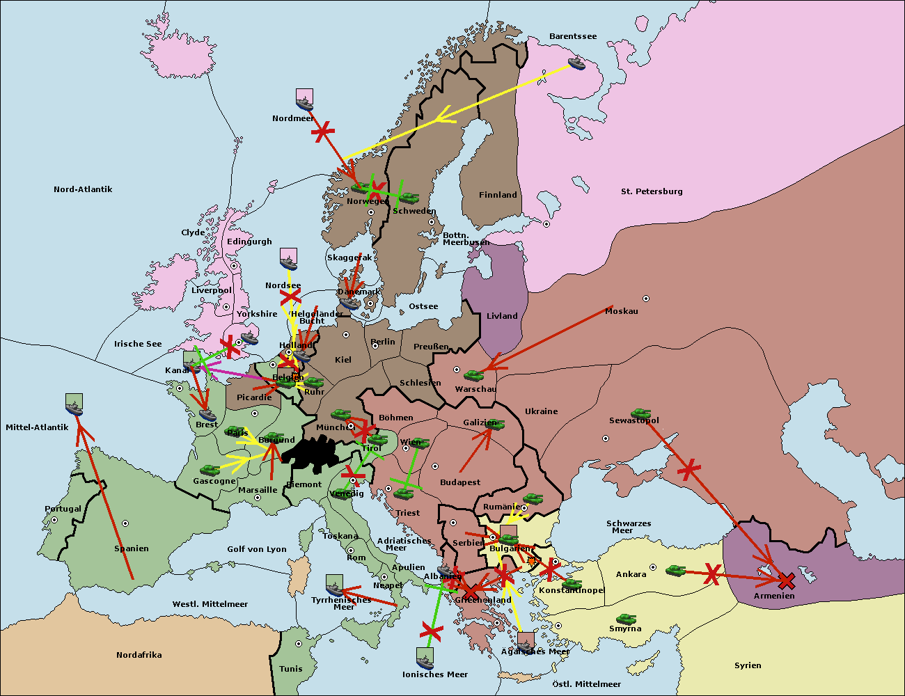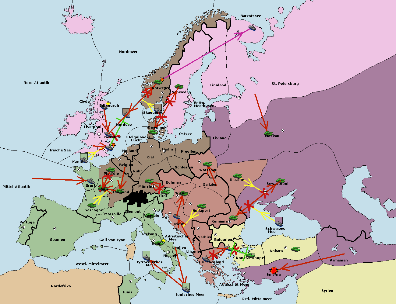 • Die Armee in St. Petersburg support hold nach Norwegen. (gescheitert)