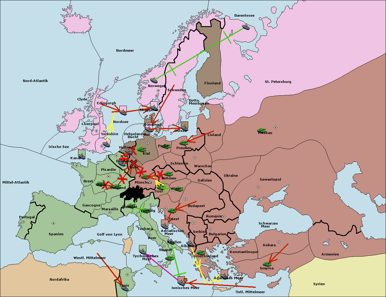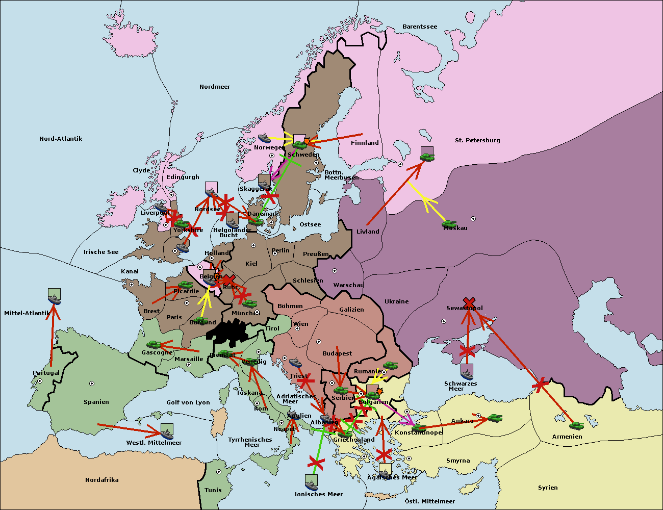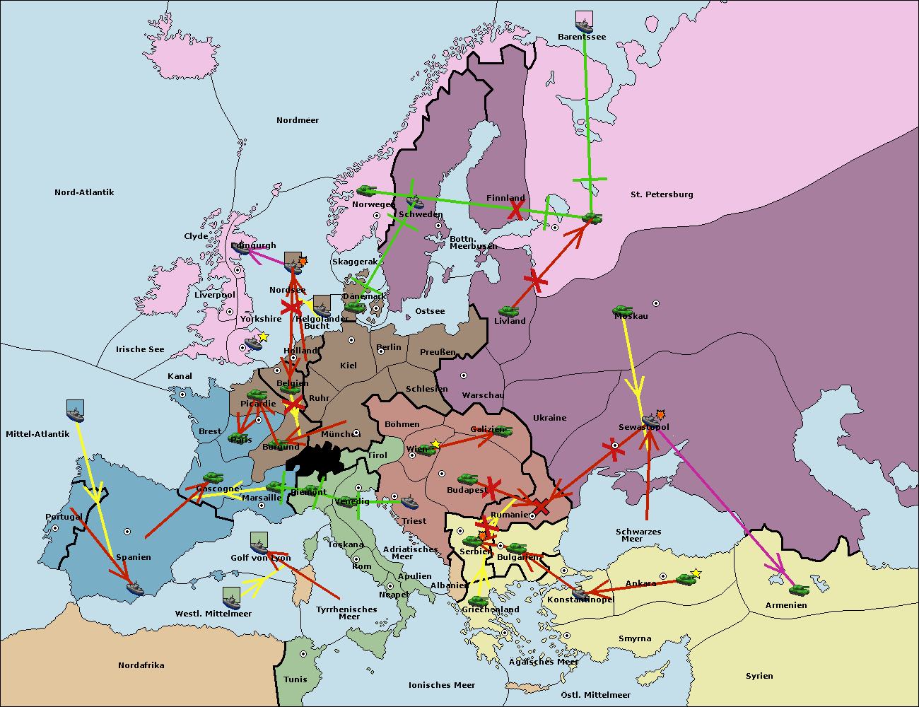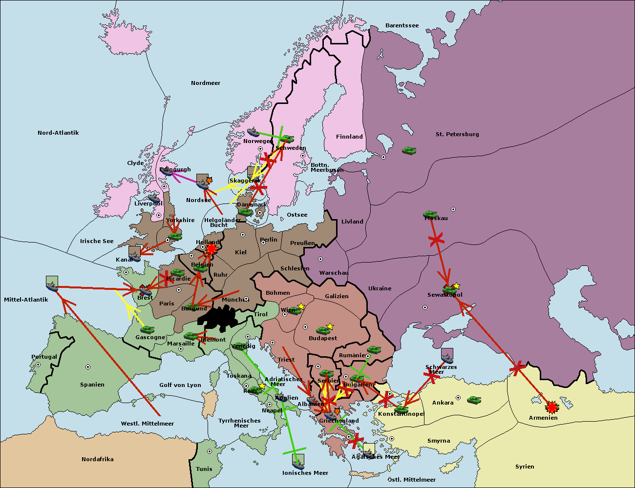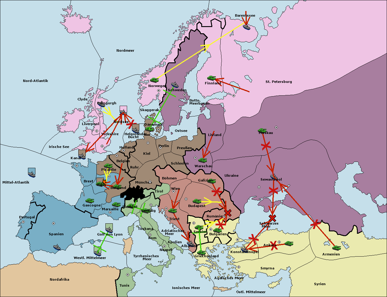 • Die Armee in St. Petersburg support hold nach Norwegen. (gescheitert)