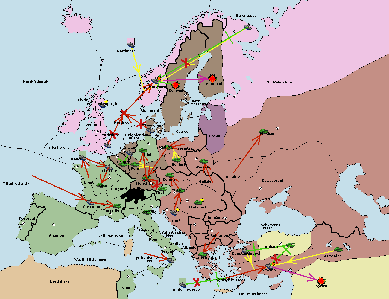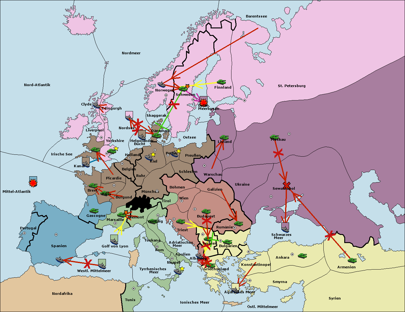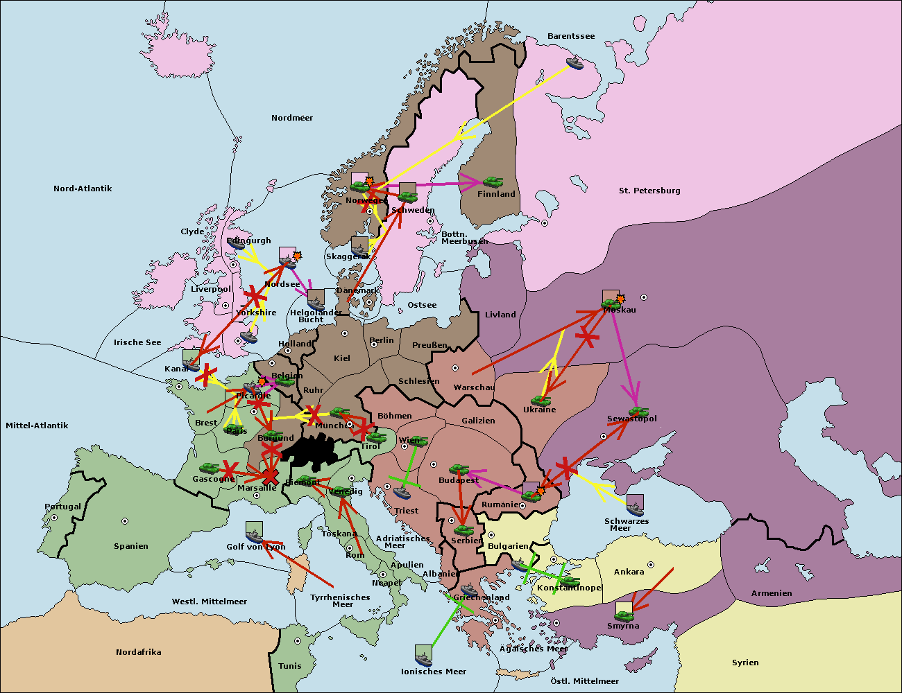 • Die Flotte in St. Petersburg (Nordküste) move nach Norwegen.