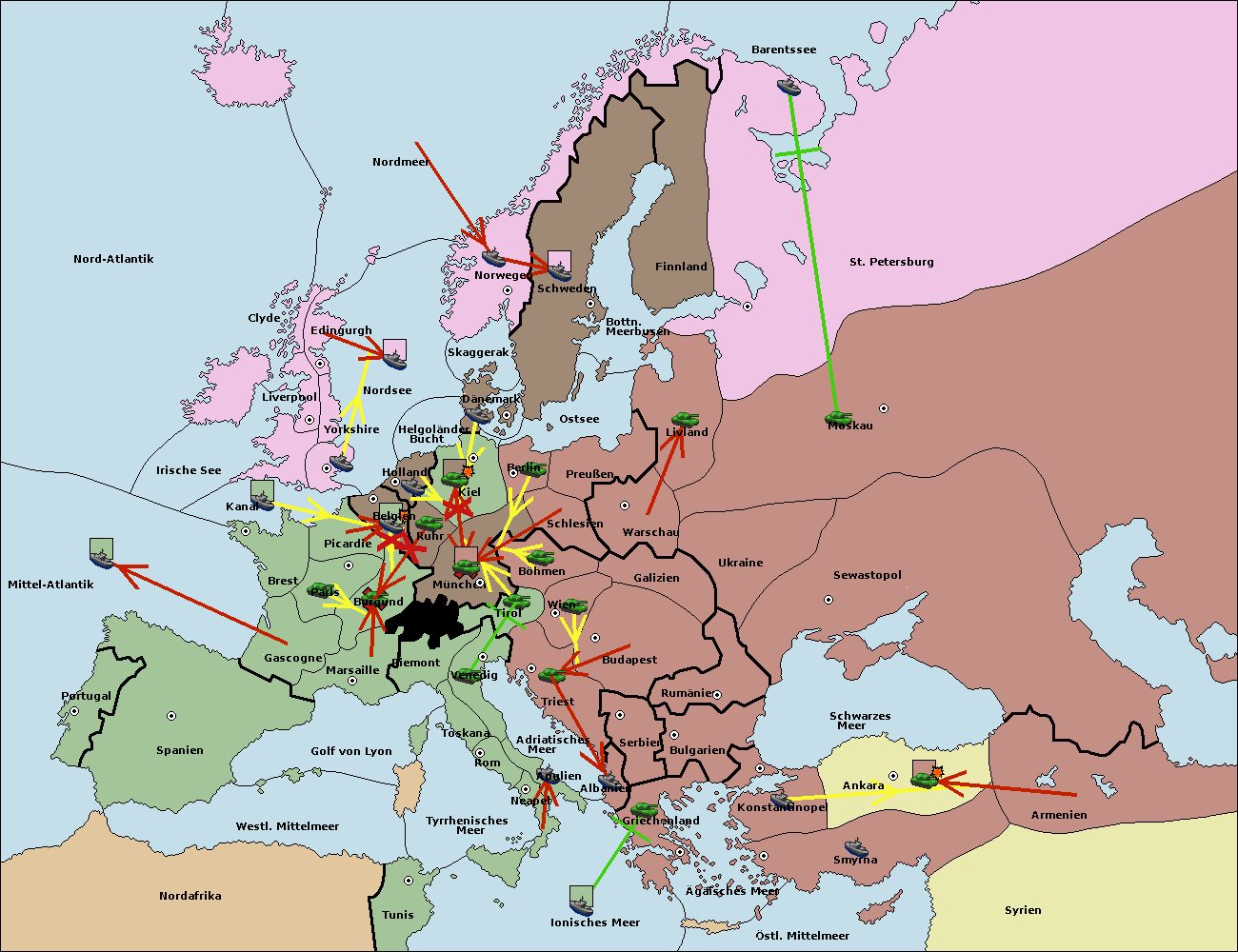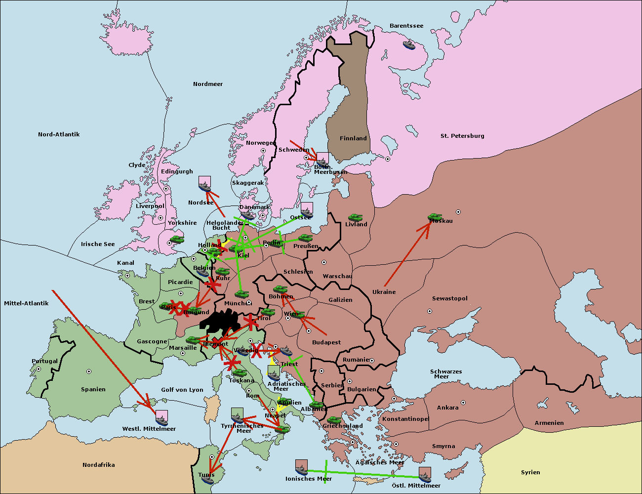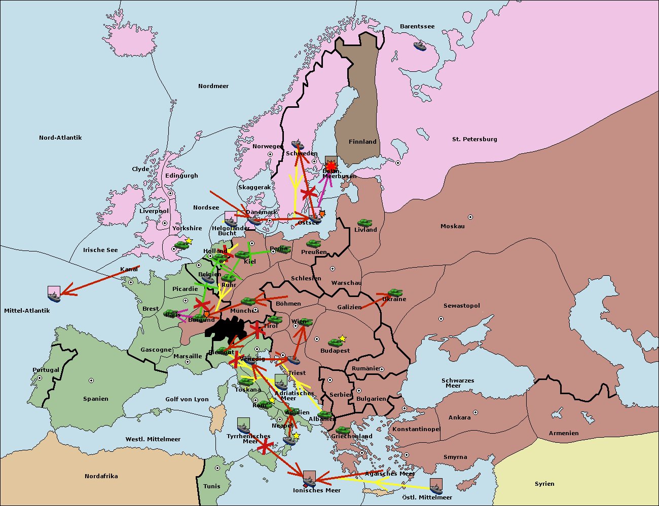 • Die Flotte in St. Petersburg (Nordküste) move nach Norwegen.