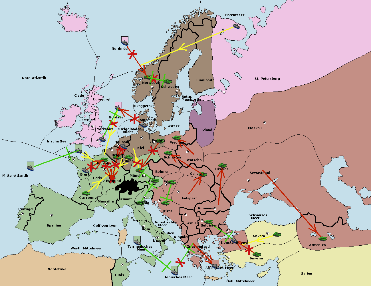 • Die Armee in Belgien support move nach Burgund von München. (gescheitert)