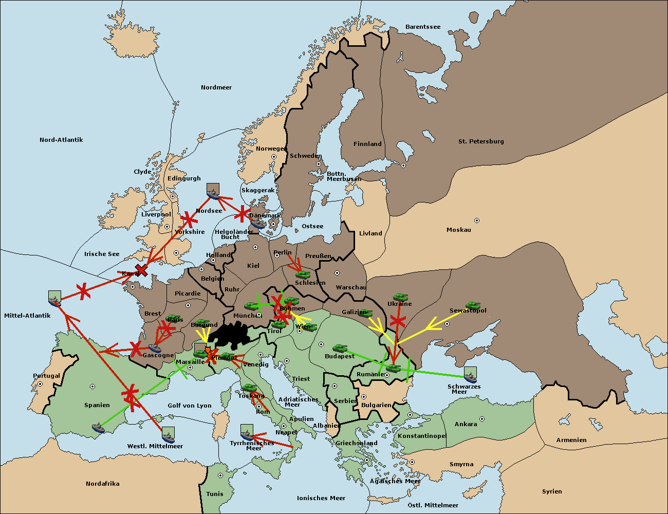 • Die Flotte in Spanien (Südküste) support move nach Marseille von Piemont.