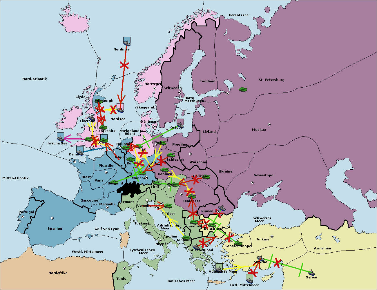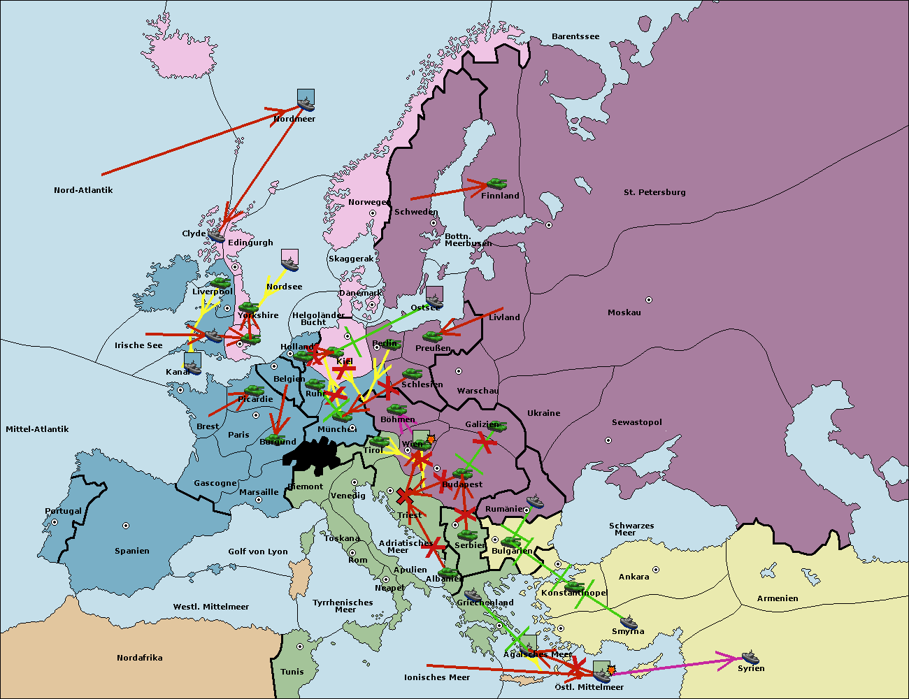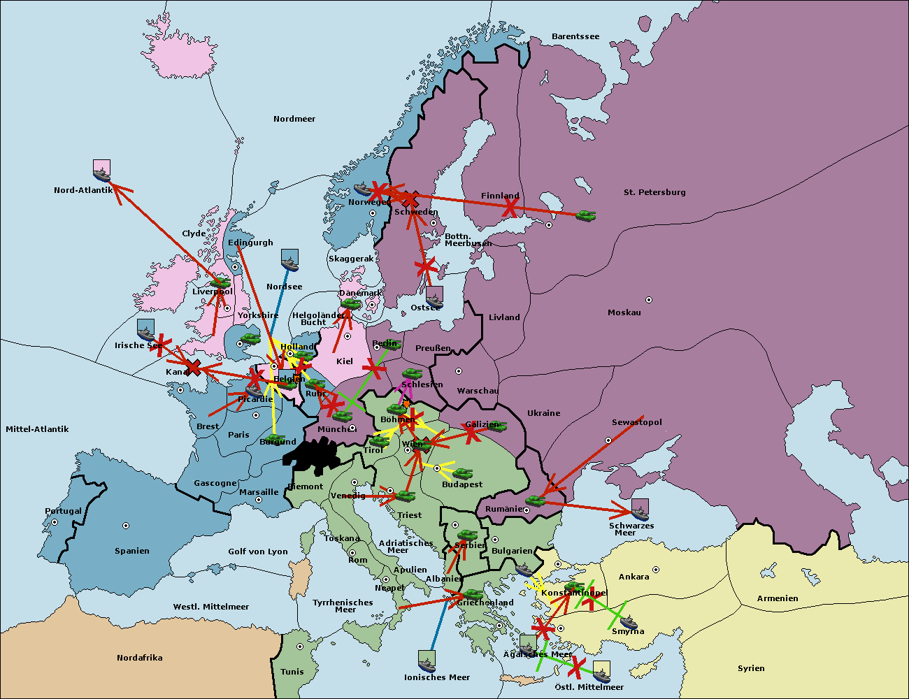 • Die Armee in Kiel wird zerstörtFlotte in Kiel gebaut.