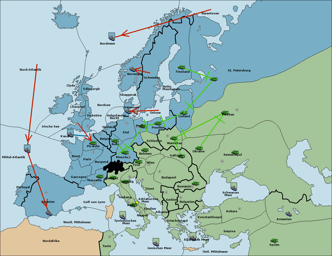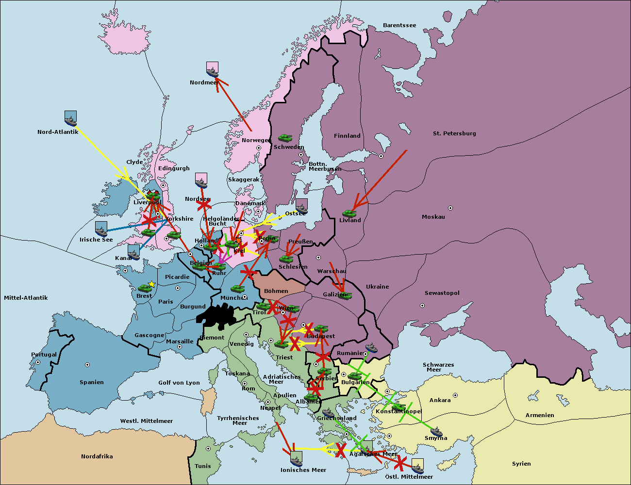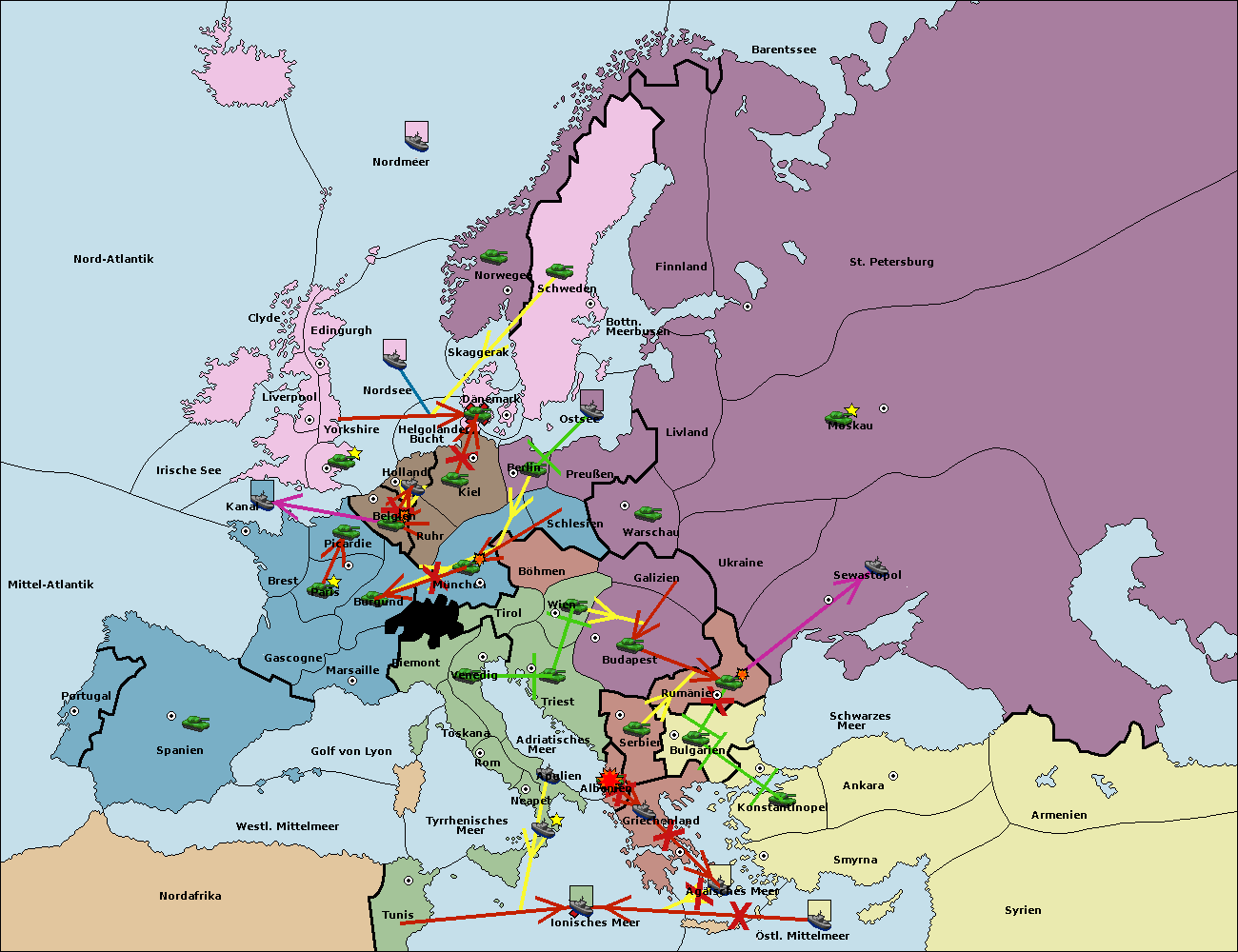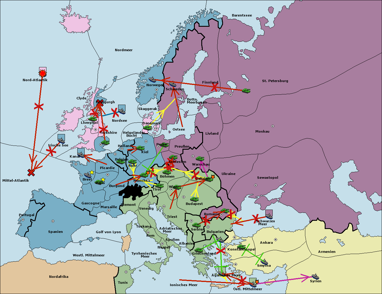 • Die Armee in Kiel wird zerstörtFlotte in Kiel gebaut.