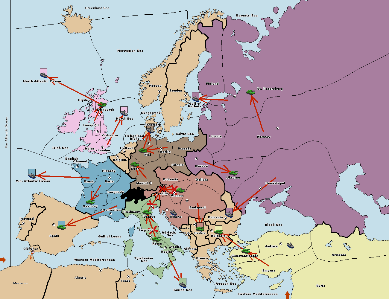 • Die Flotte in Bulgarien (Nordküste) move nach Konstantinopel.