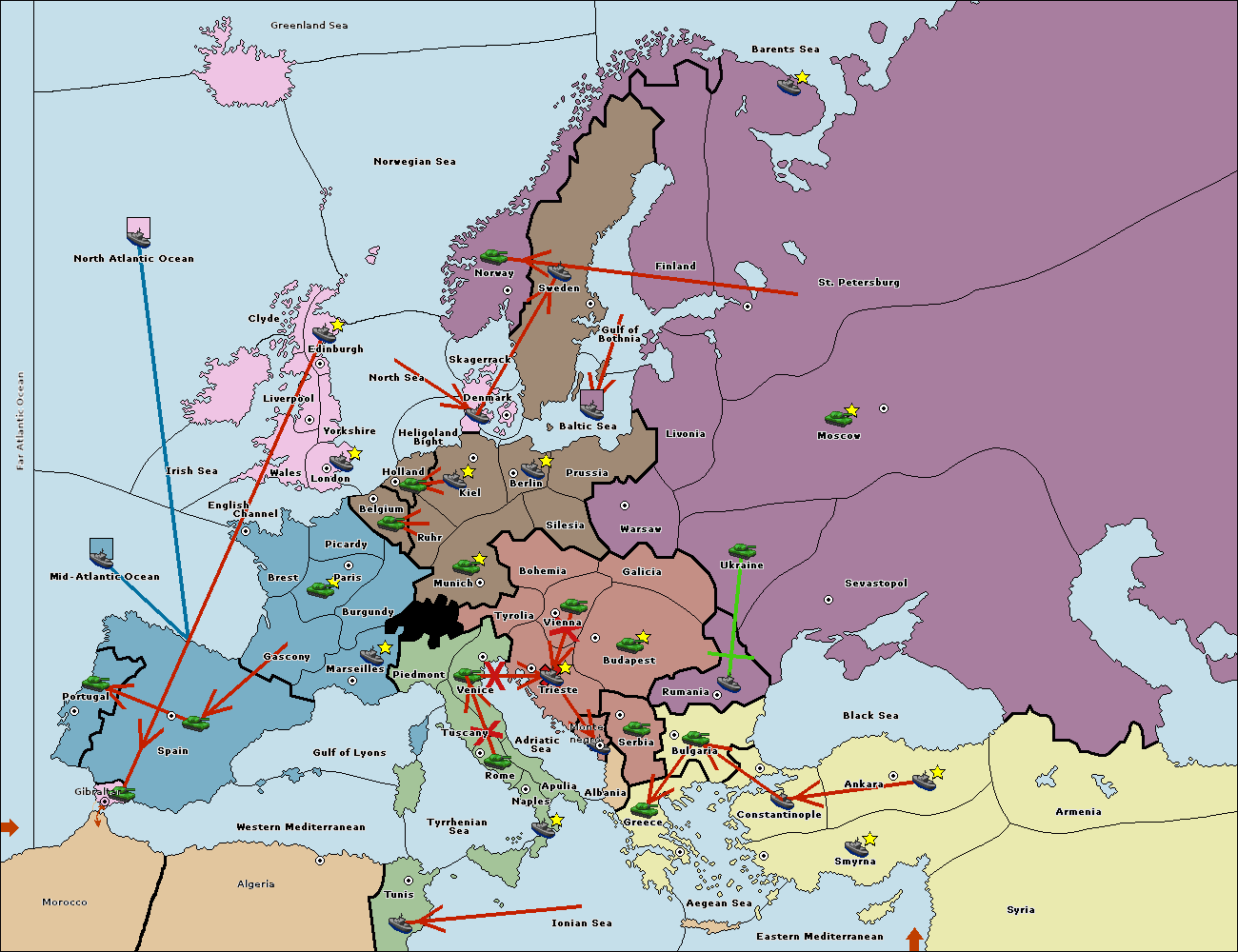 • Die Flotte in Norwegen support move nach Schweden von Finnland.
