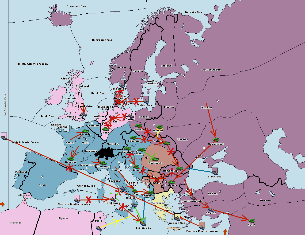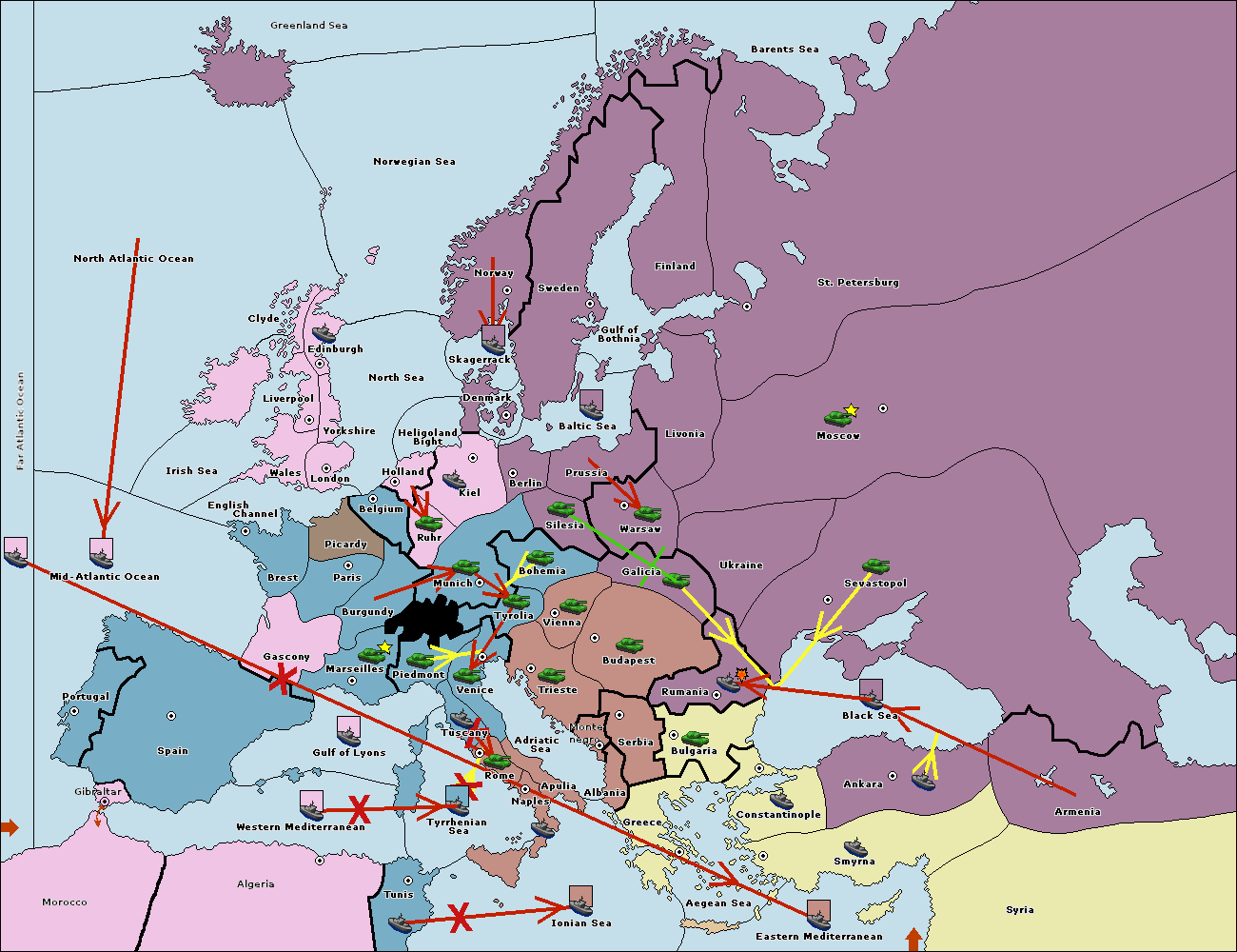 • Die Flotte in westl. Mittelmeer move nach Tyrrhenisches Meer. (gescheitert)