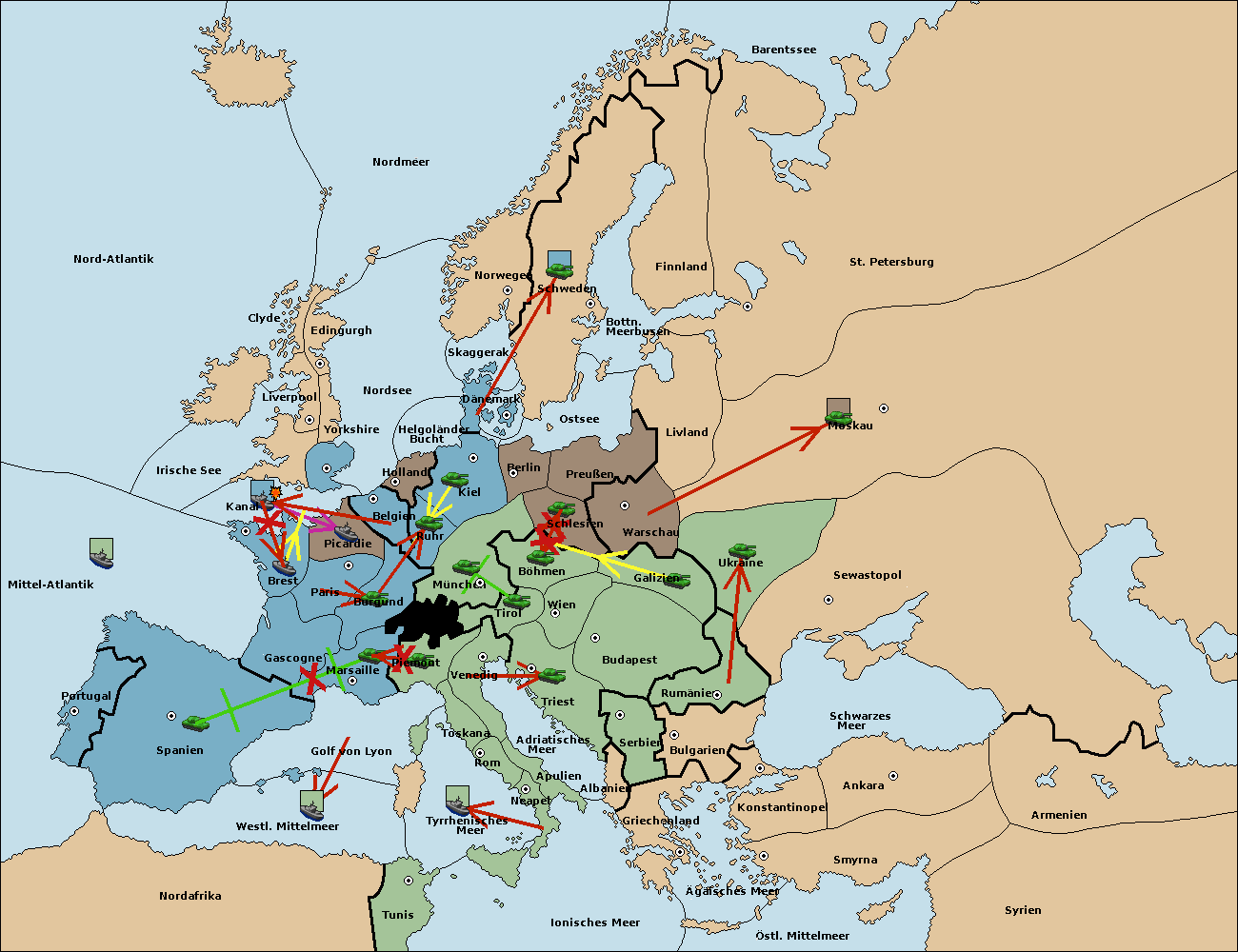 • Die Armee in Kiel support move nach München von Burgund. (gescheitert)