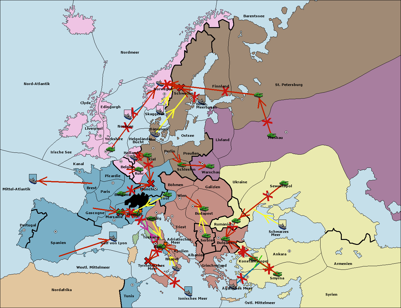• Die Armee in Ankara move nach Rumänien via Concoy. (gescheitert)