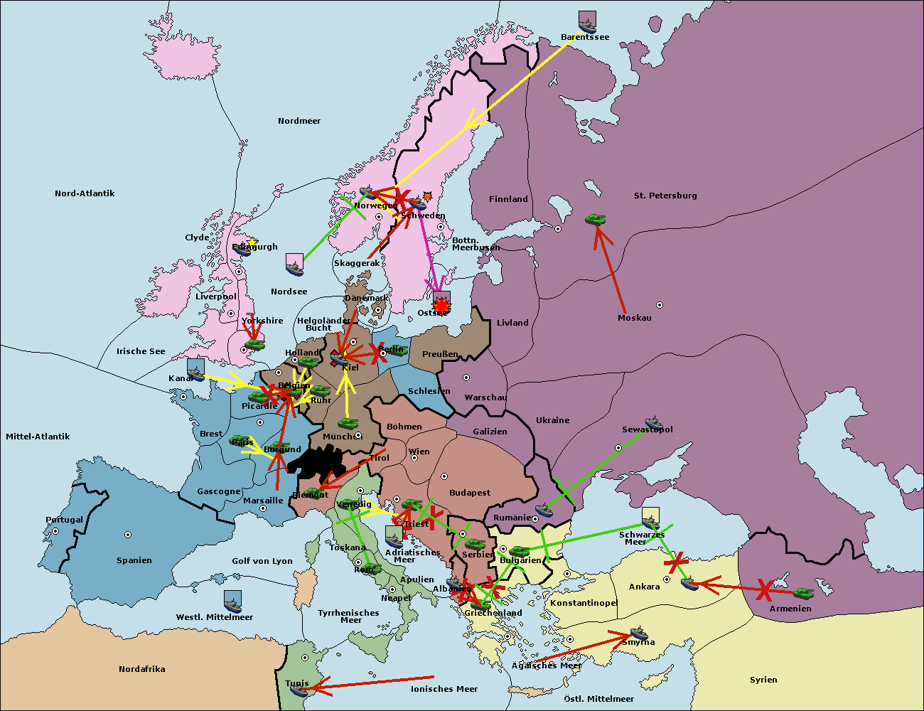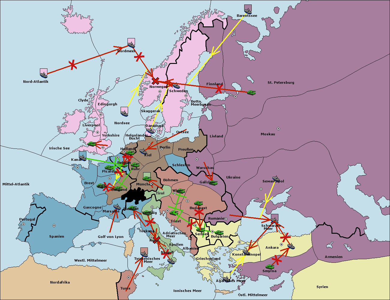 • Die Flotte in St. Petersburg (Nordküste) move nach Norwegen.
