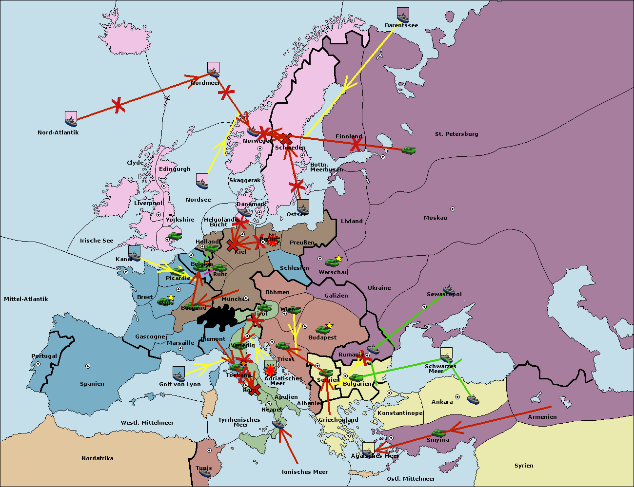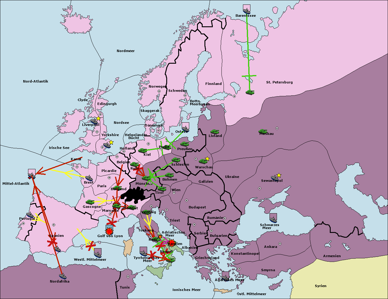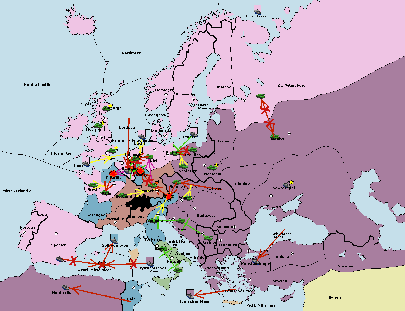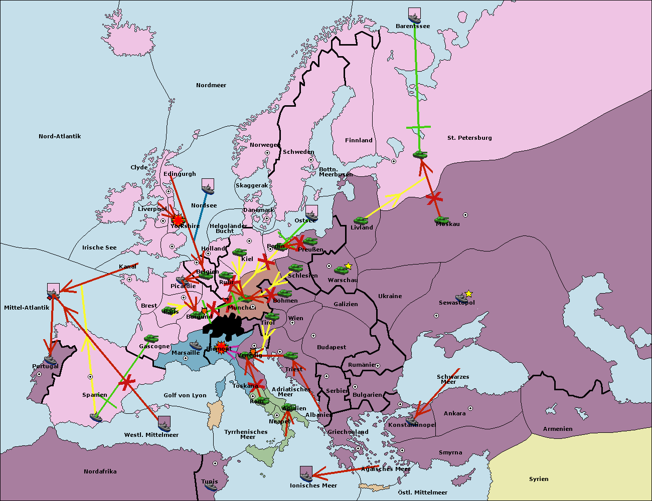 • Die Armee in München wird zerstörtFlotte in München gebaut.