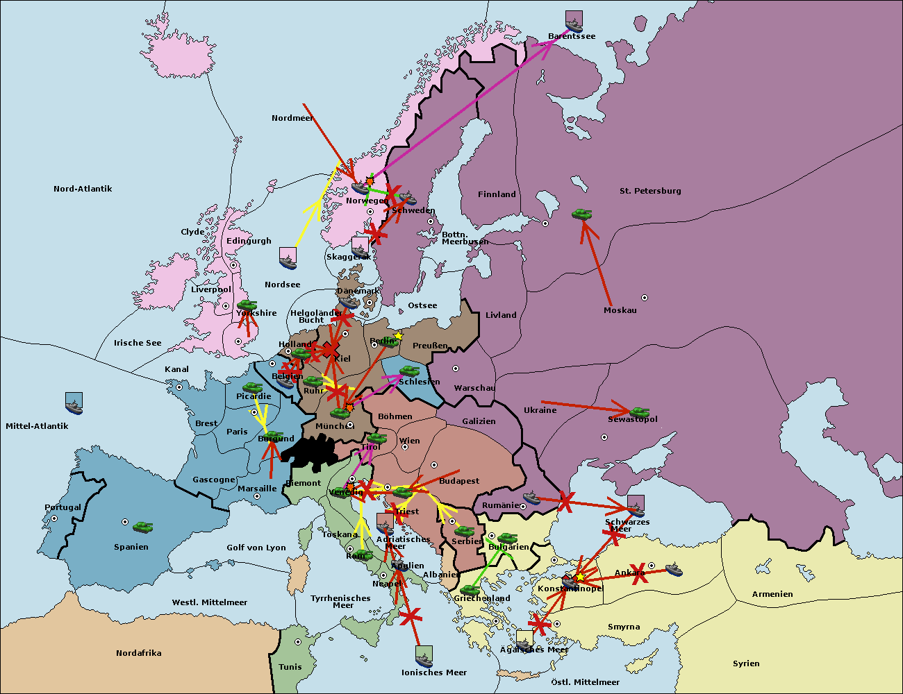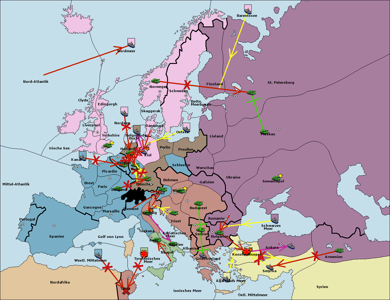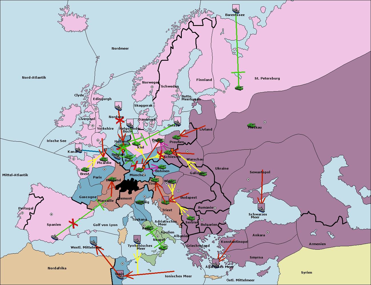 • Die Armee in München wird zerstörtFlotte in München gebaut.