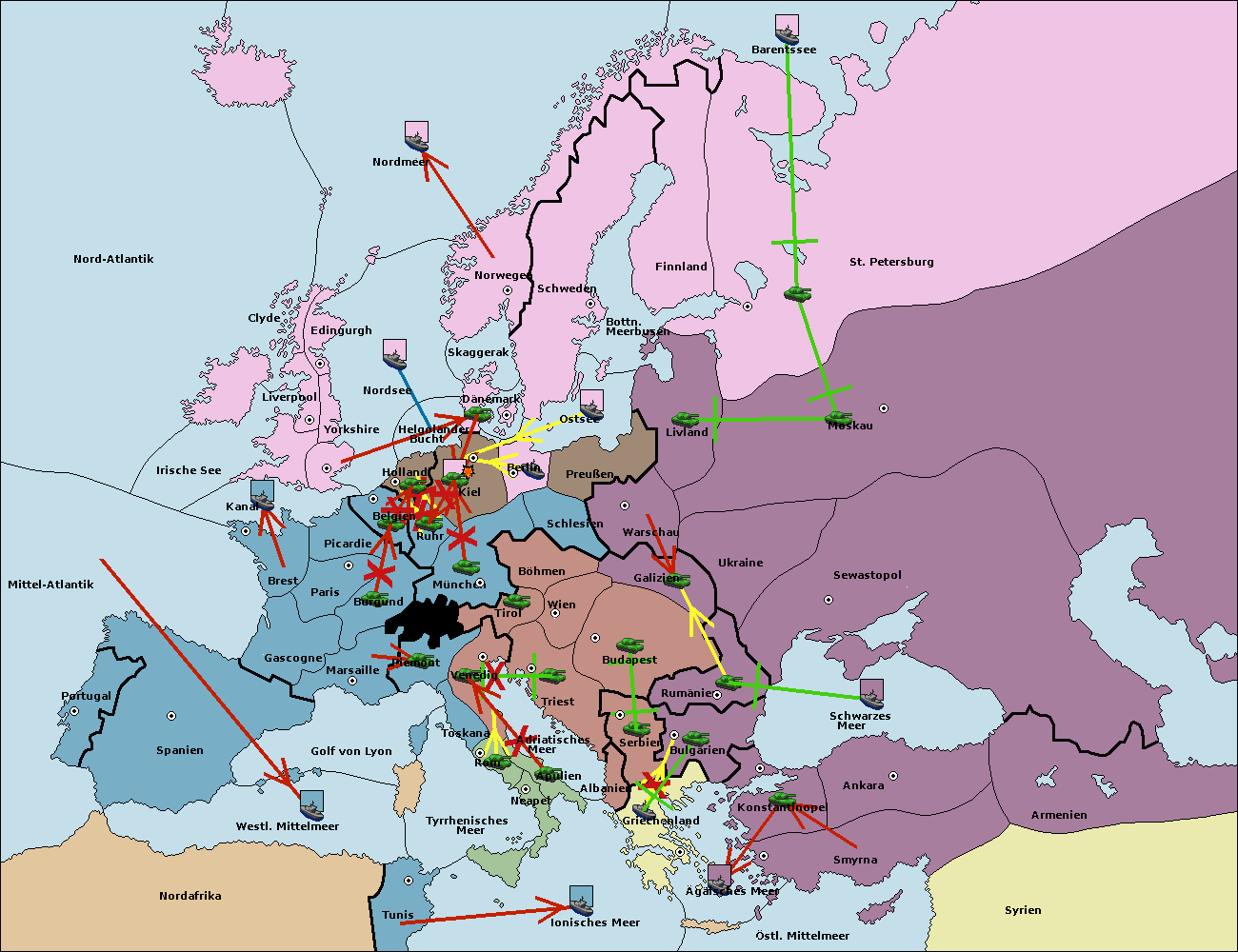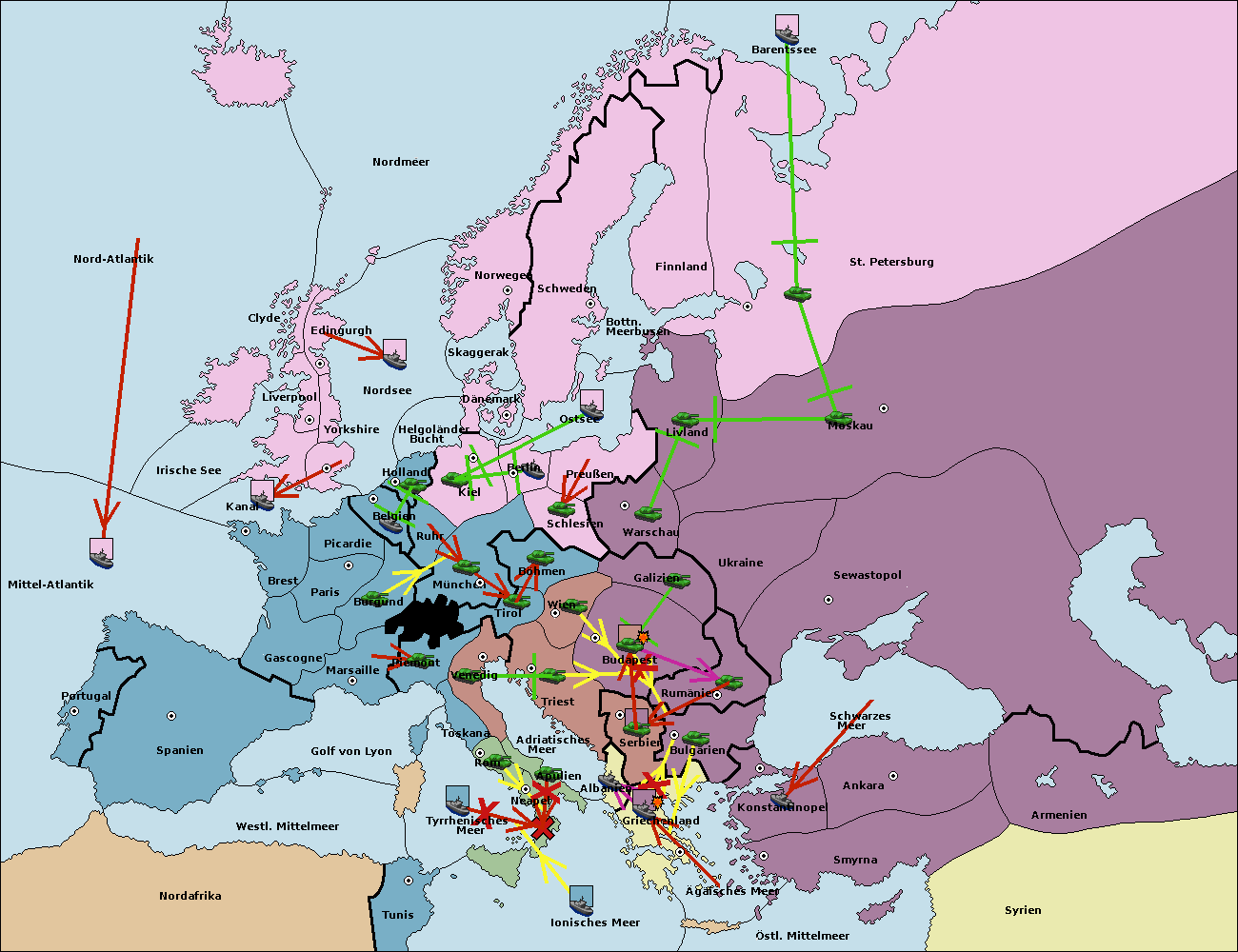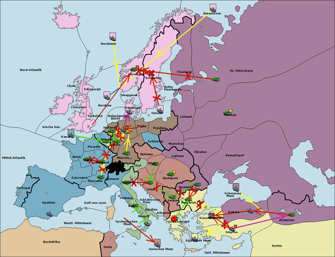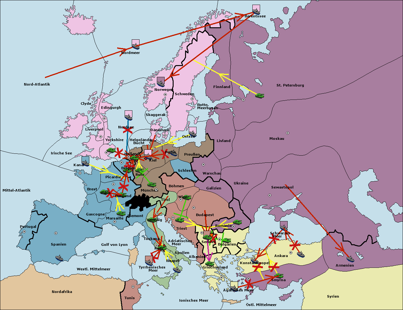 • Die Armee in München wird zerstörtFlotte in München gebaut.