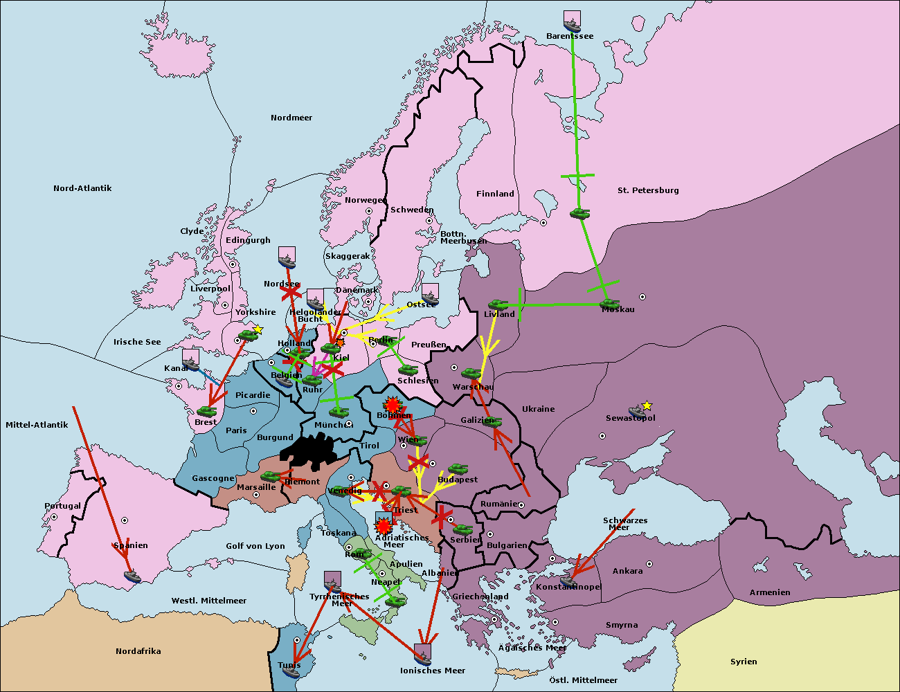 • Die Flotte in Adriatisches Meer support move nach Triest von Budapest. (gescheitert)