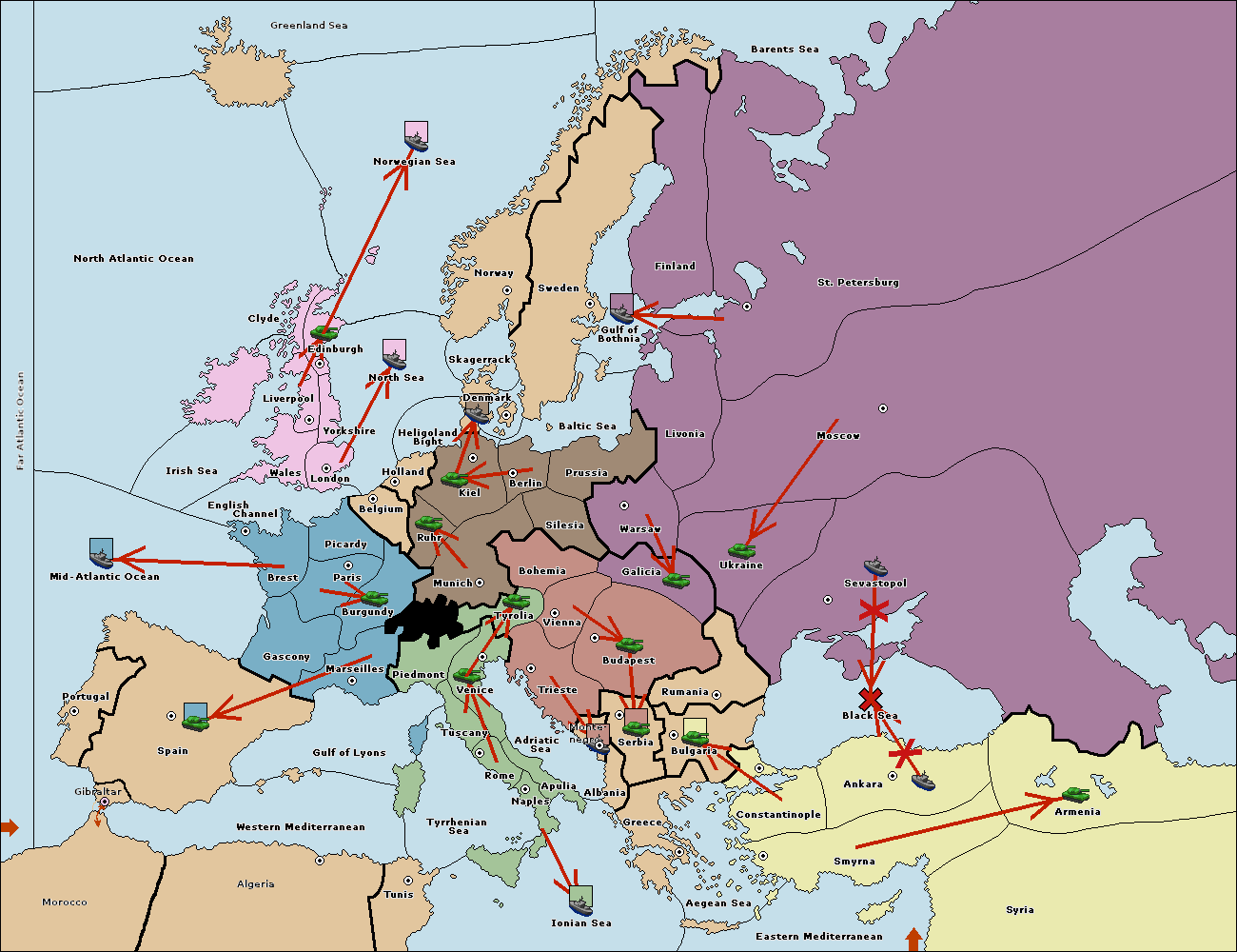 • Die Flotte in Montenegro support move nach Triest von Budapest.