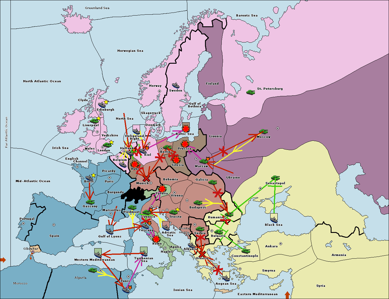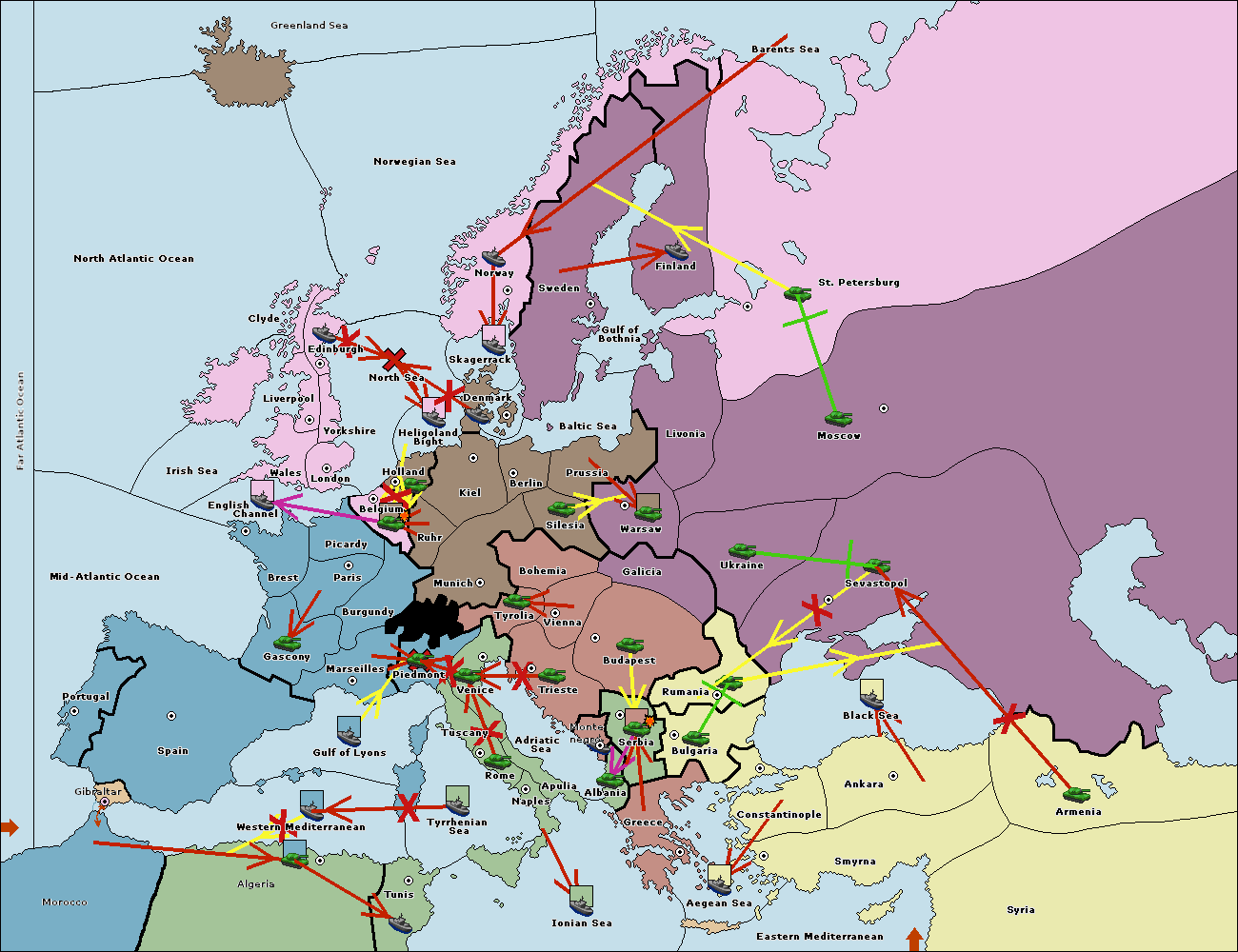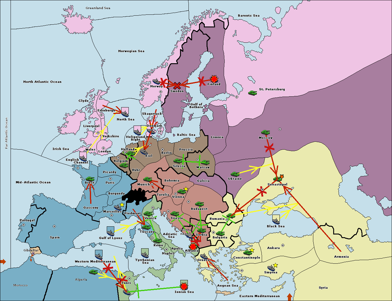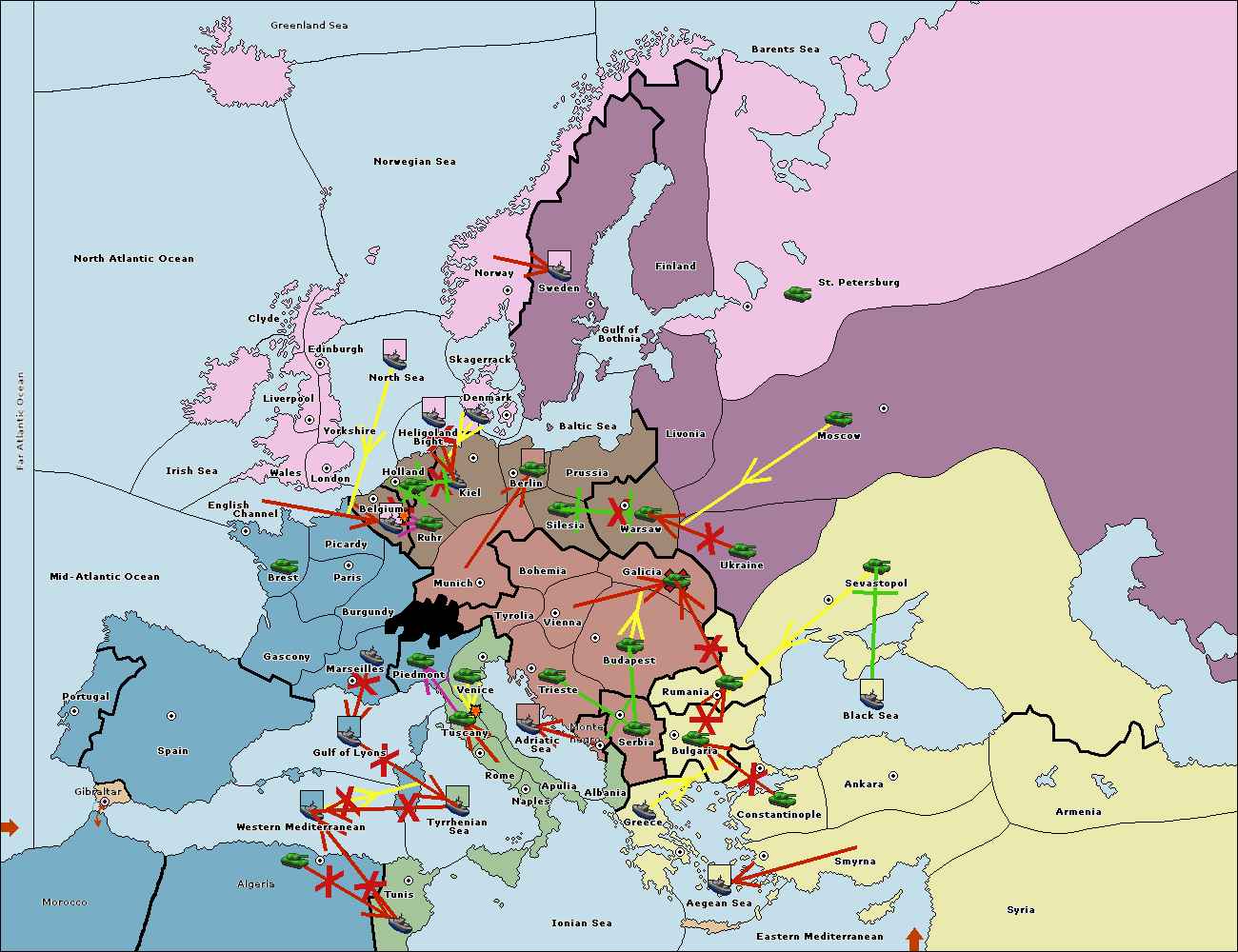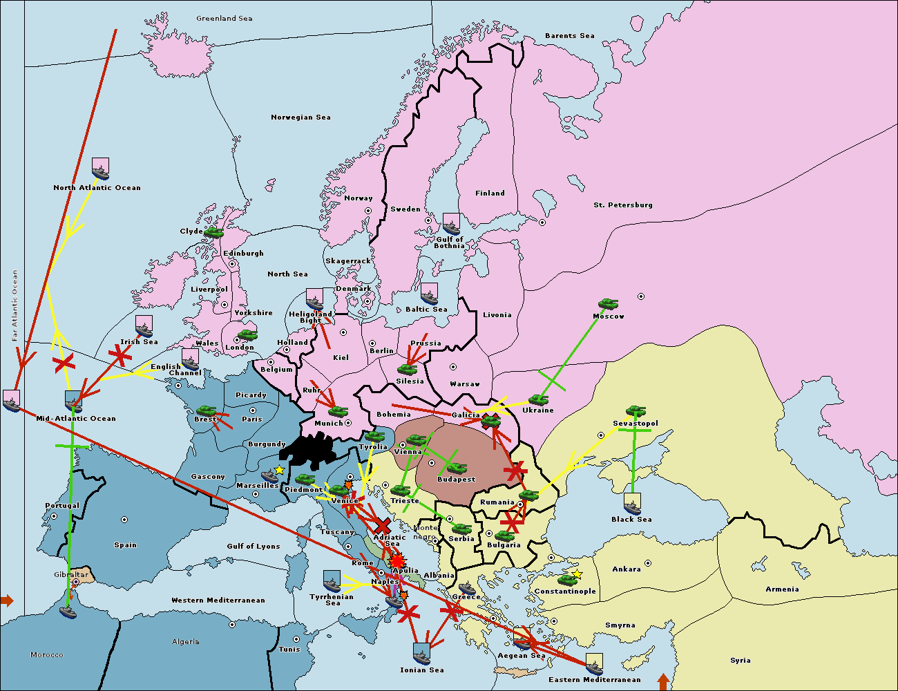 • Die Armee in Venedig support move nach Triest von Tirol. (gescheitert) (verdrängt)