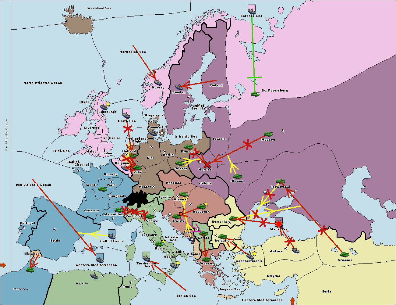 • Die Armee in Sewastopol support move nach Rumänien von Bulgarien. (gescheitert) (verdrängt)