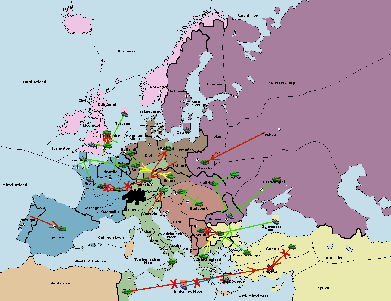 • Die Flotte in Schwarzes Meer support move nach Bulgarien von Serbien. (gescheitert)