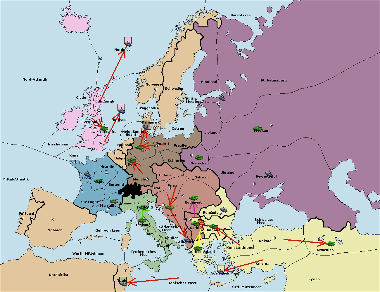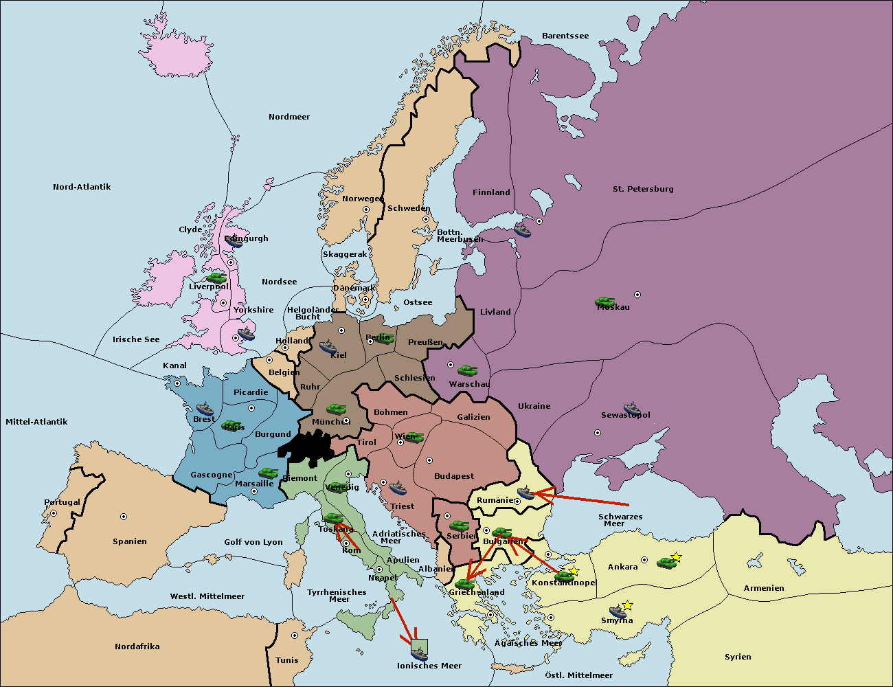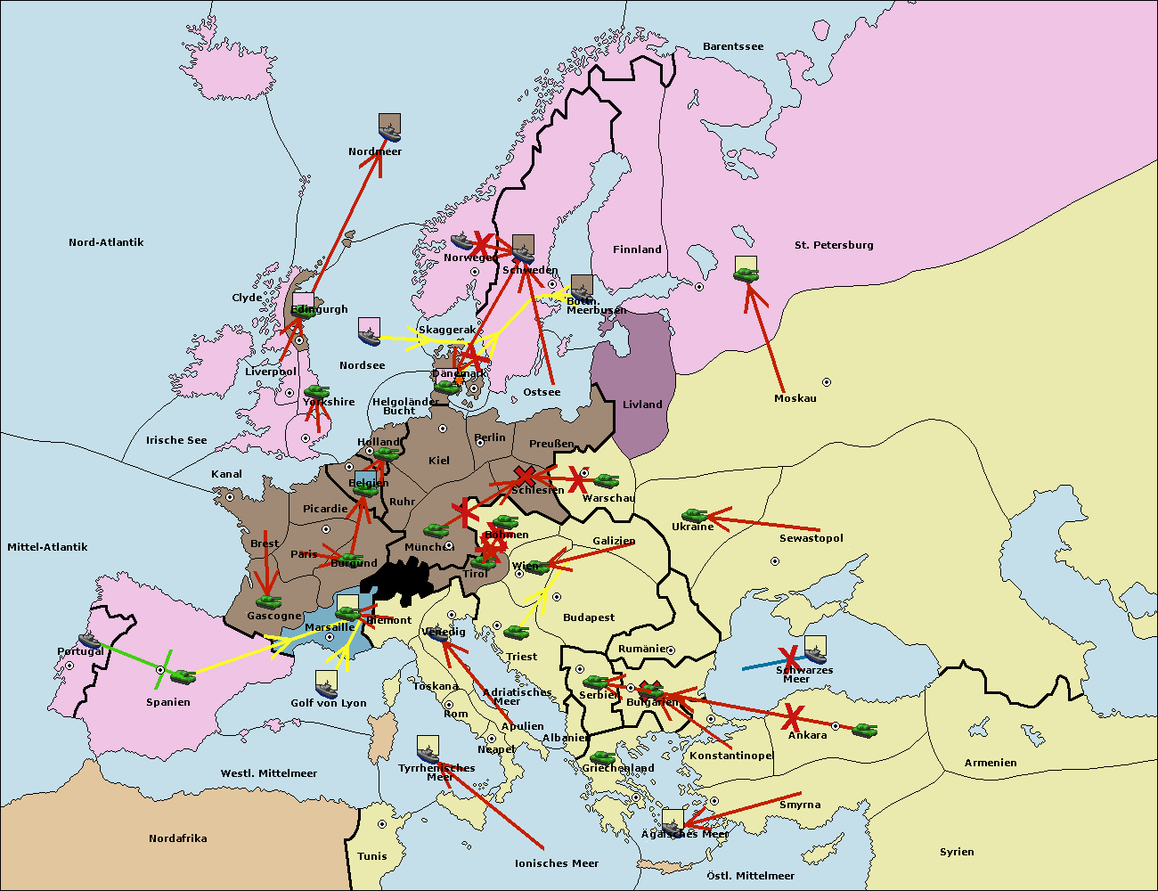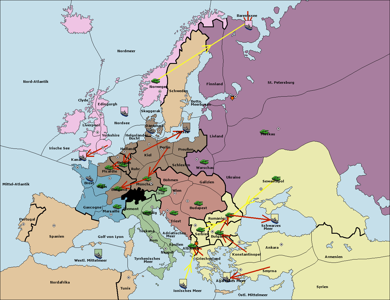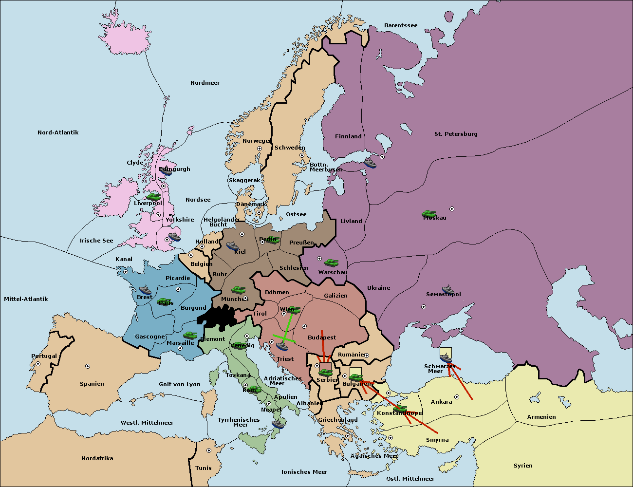 • Die Armee in Ankara move nach Bulgarien via Concoy. (gescheitert)