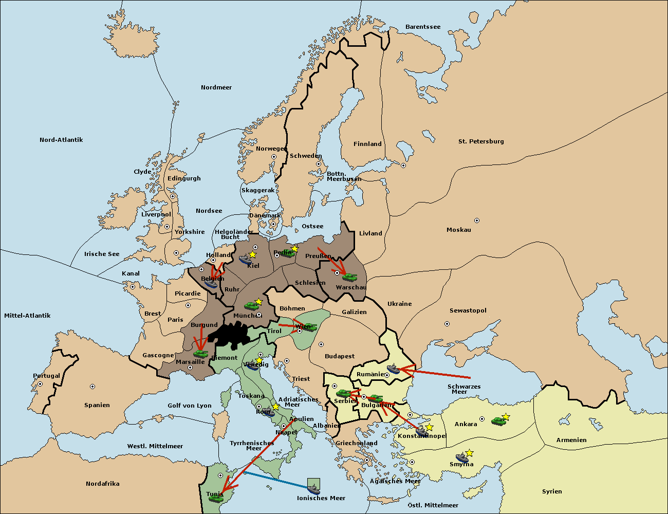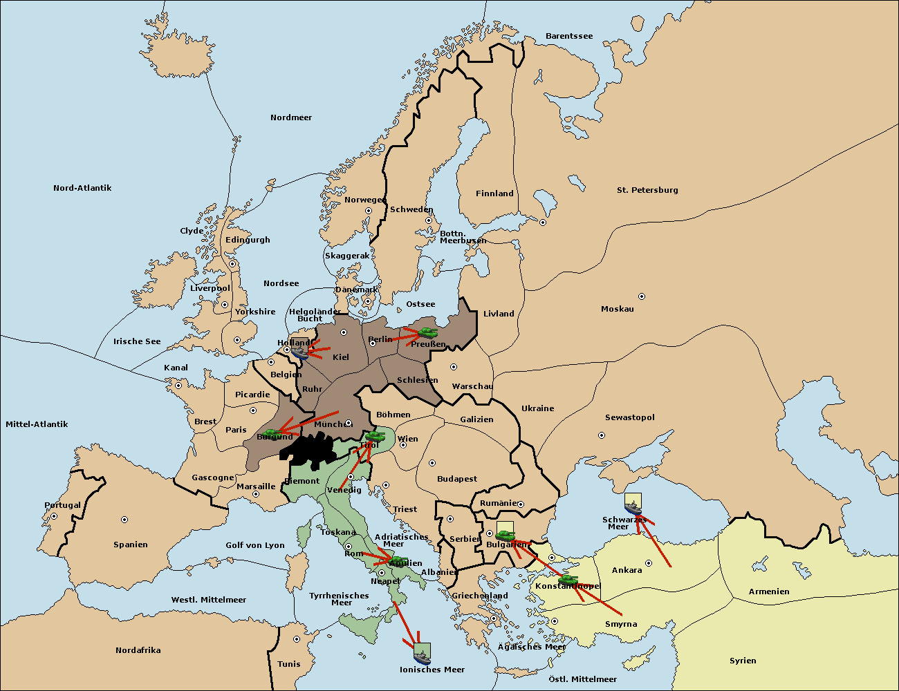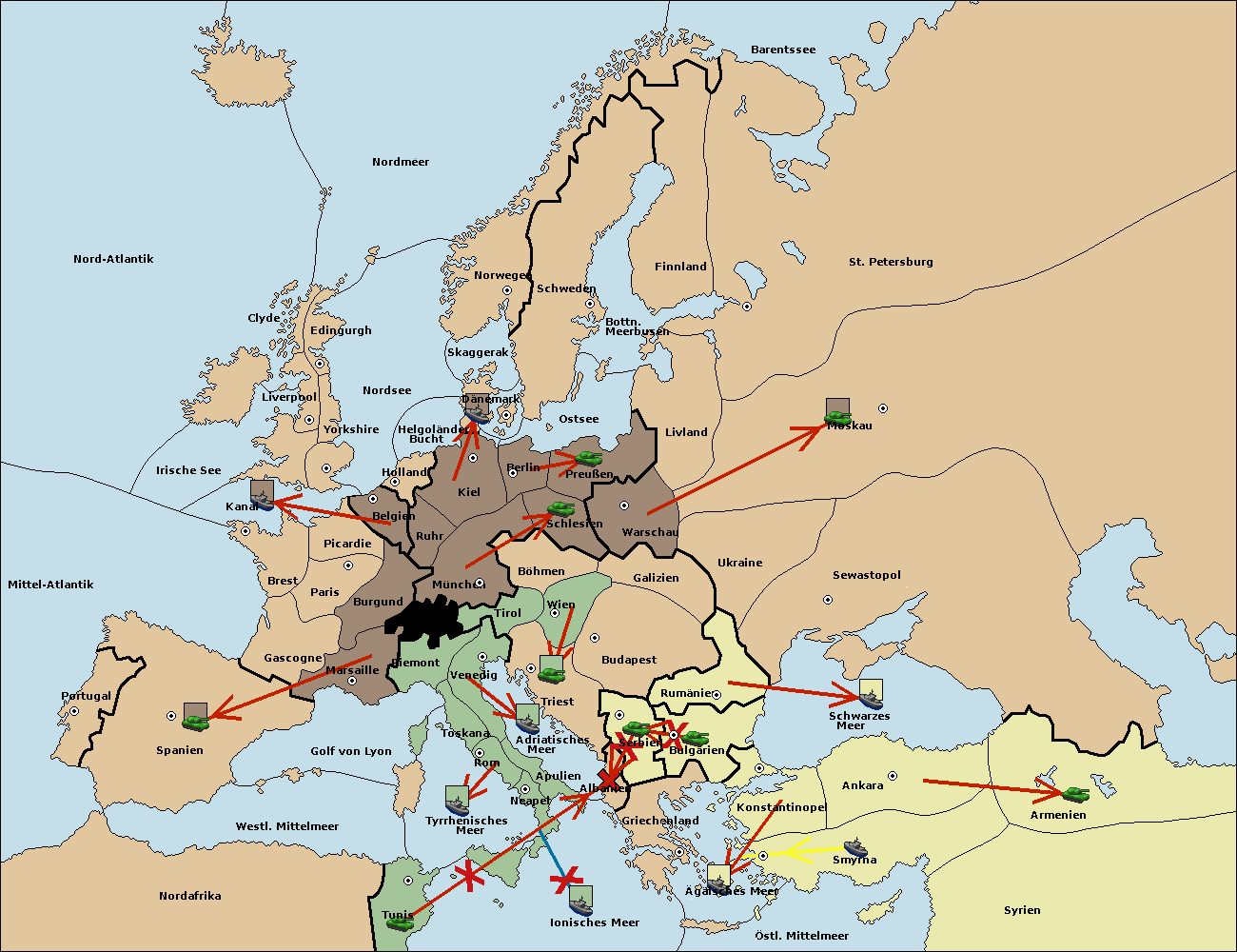 • Die Armee in Tunis move nach Albanien via Concoy. (gescheitert)