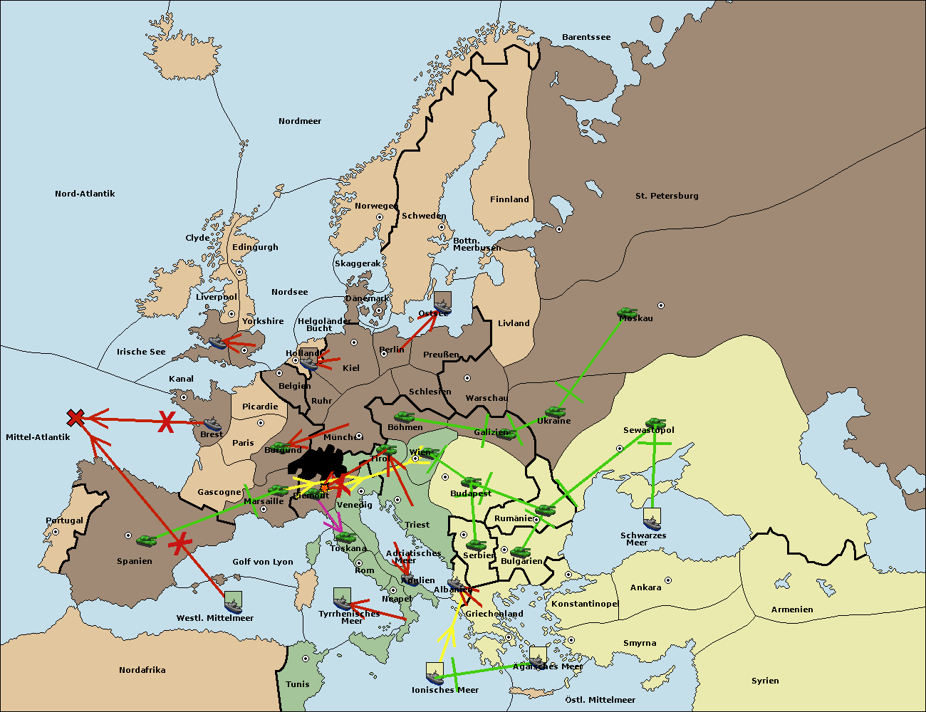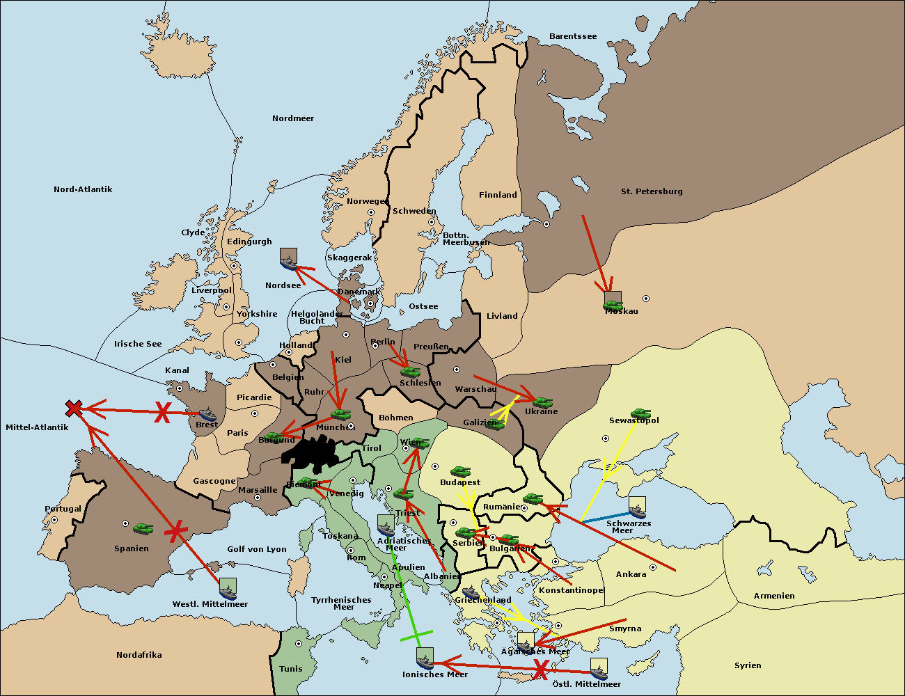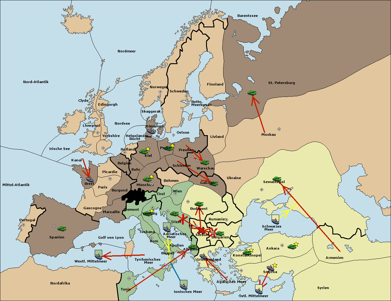 • Die Armee in Budapest support move nach Triest von Serbien.