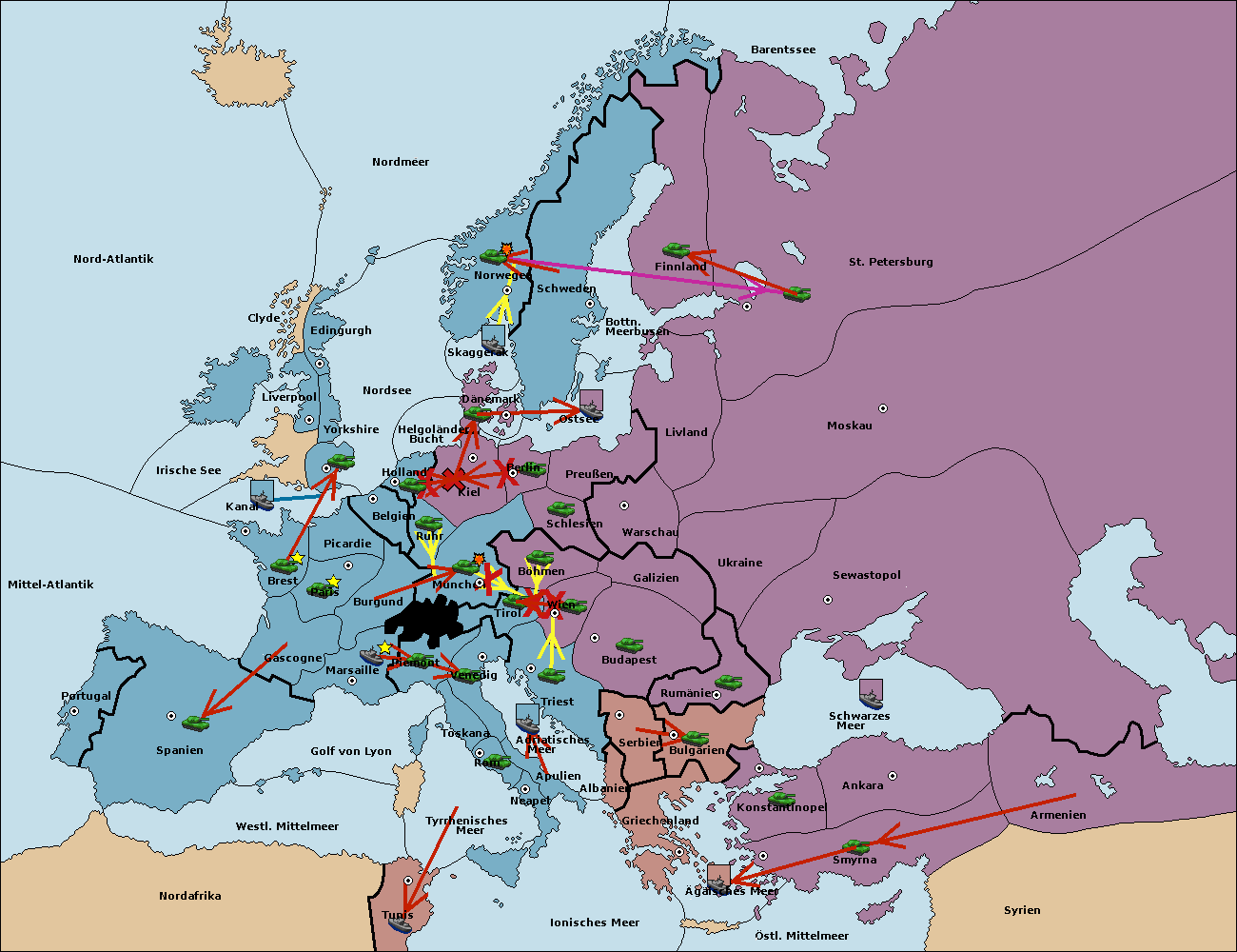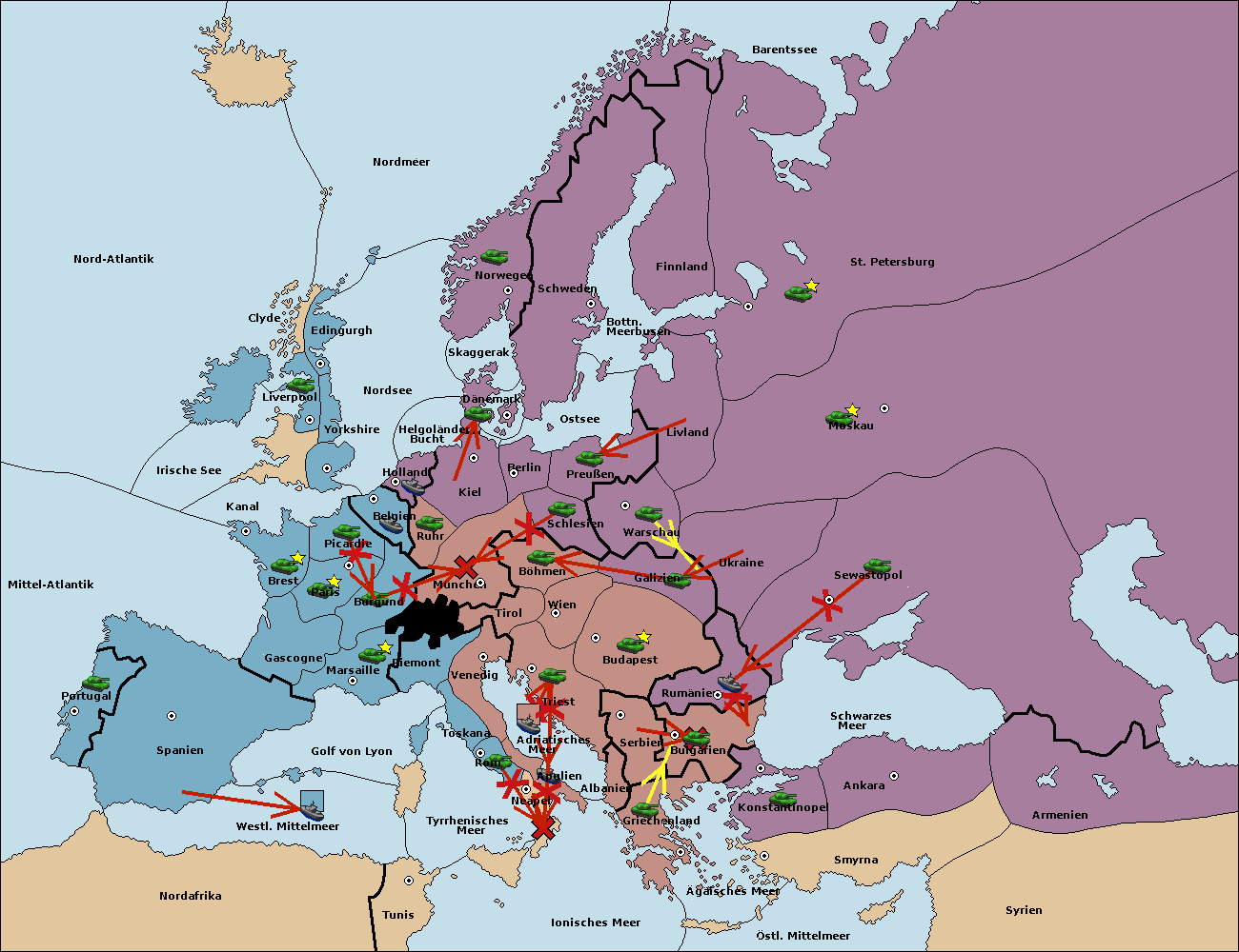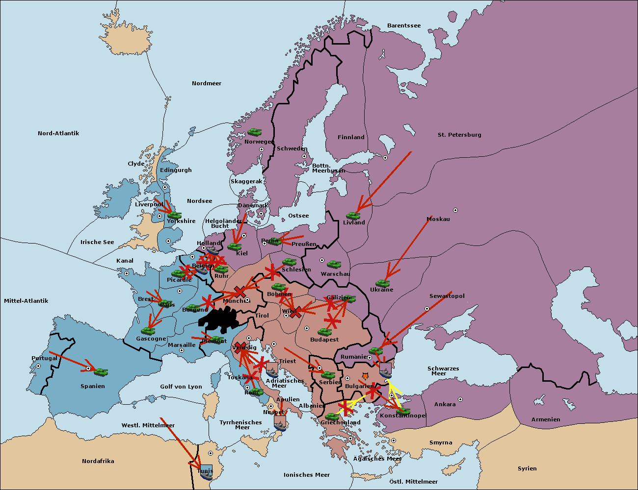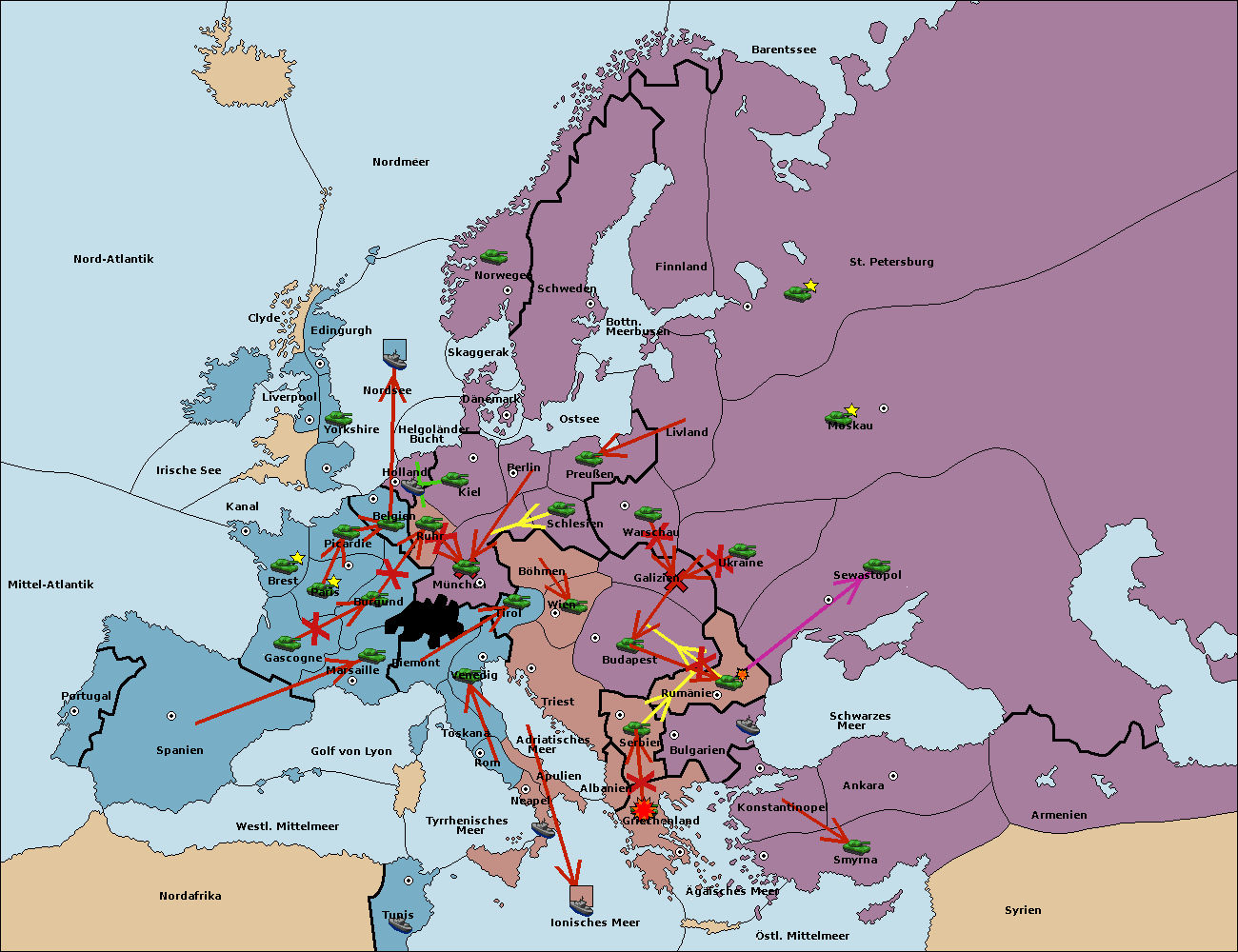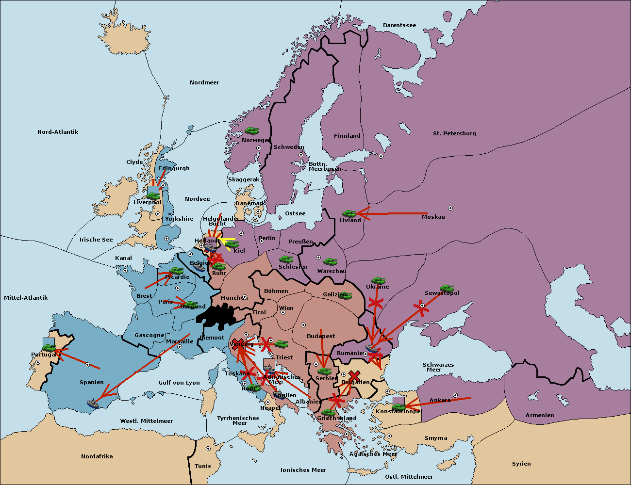 • Die Armee in Bulgarien wird zerstörtFlotte in Bulgarien gebaut.